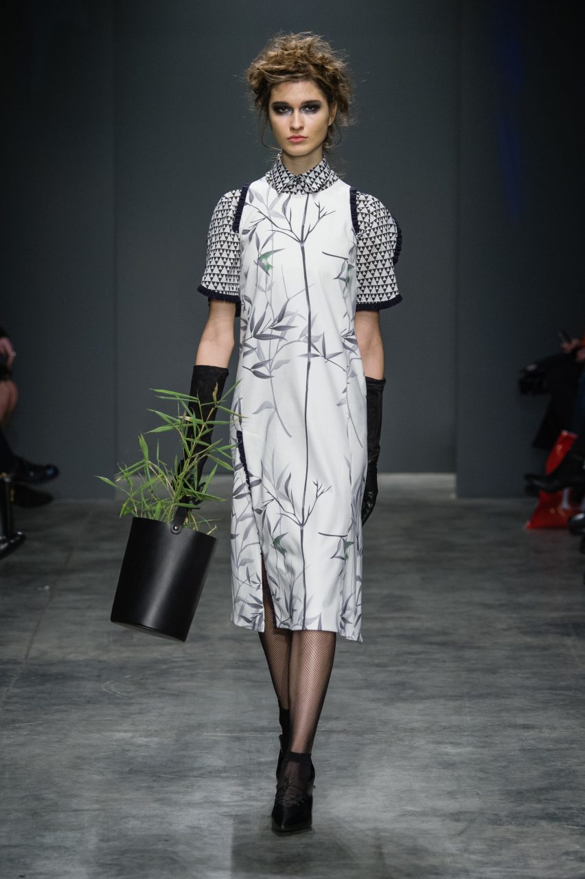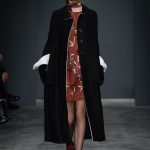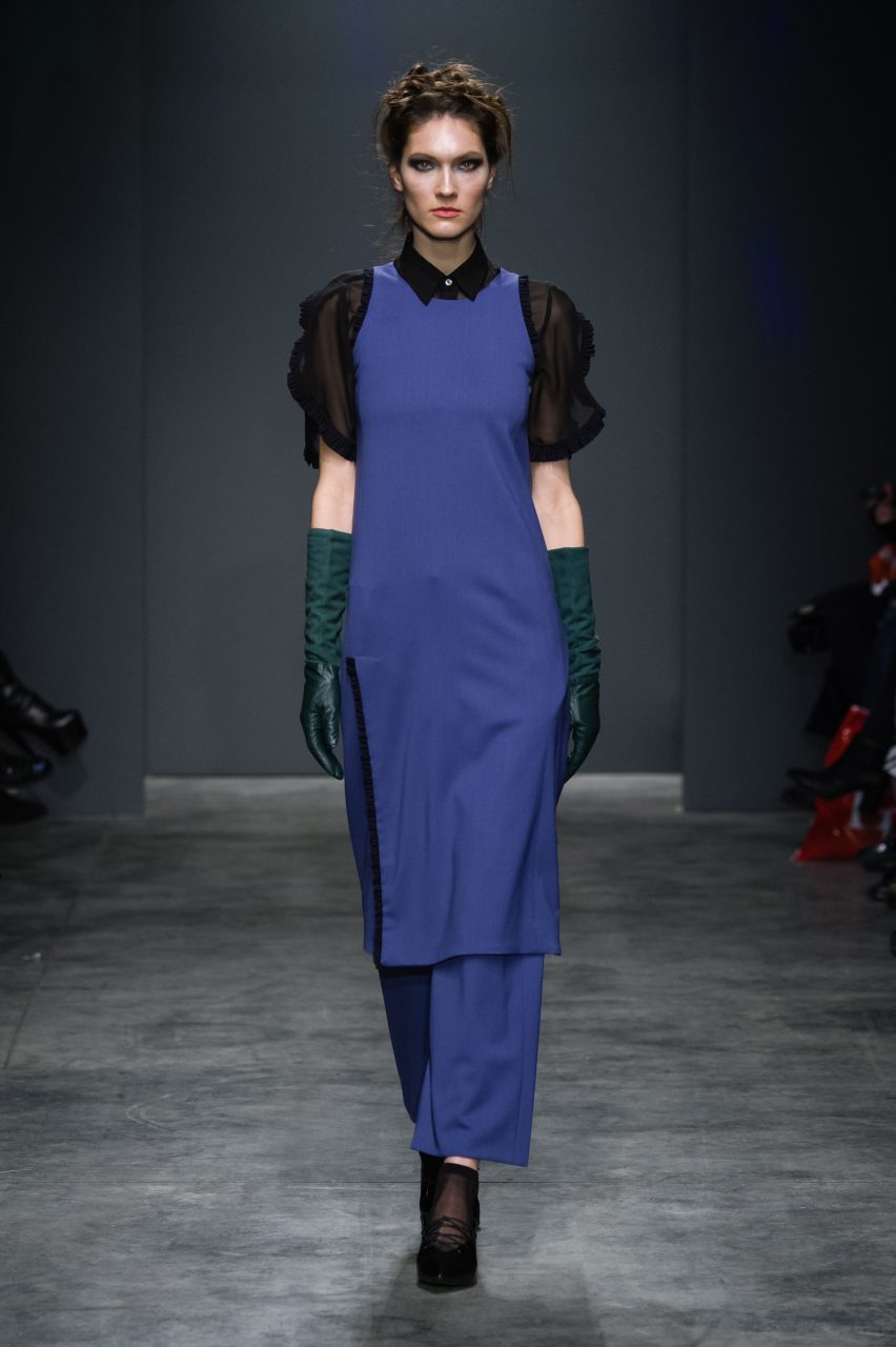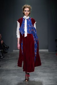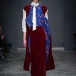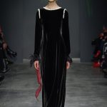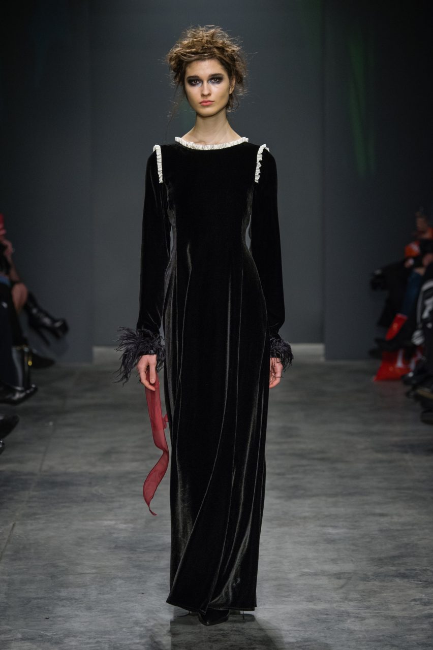 La giovane designer ha affrontato con passione ed entusiasmo il primo defilé del brand che porta il suo nome, nella appena conclusasi ultima edizione di Altaroma gennaio 2017; sebbene avesse già partecipato con successo ad altri passati appuntamenti,presentando delle piccole capsule, non aveva ancora mai sfilato. La proposta della collezione Marianna Cimini A/I 2017-18 possiede nel complesso uno stile temperato e femminile, tagli sartoriali; tessuti pregiati strutturano abiti dalle linee pulite, pantaloni a trombetta, gonne a godé con ampia baschina, giacche dalle spalle strette e dai volumi importanti sul retro, camicette bon ton. Romantica e poetica la presenza di piccole ruche nere poste ai bordi delle maniche delle camiciole; ruche che, replicate nei toni del bianco avorio, spuntano come piccole stelle filanti anche dalla scollatura del sontuoso abito nero in velluto di seta, dalla linea rinascimentale e dall’ allure sofisticata.Un mood carismatico ma pacato, espresso dal paltò nero con polsini bianchi dalla tempra rigorosa e regale; riprodotto in velluto di seta rosso cardinale, rosso corposo, evocativo delle tinte sature proprie dei ricchi abiti cinquecenteschi.