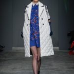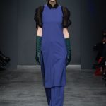 Giocose, dall’indole retrò stile flapper e dal carattere irriverente sono le bordure in piume di struzzo degli orli delle maniche e dei pantaloni di alcune delle proposte; talvolta nere, tal’altra di un intenso azzurro china.