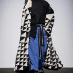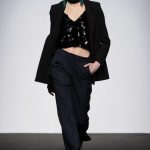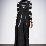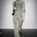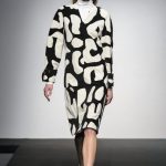 Fantasie geometriche si sono alternate a temi floreali e tinte unite; dettagli dall’allure seducente come la fascia a righe orizzontali portata a mò di collare e i calzini da uomo con reggicalze incorporato hanno aggiunto un vezzoso tocco di stile armonizzandosi con il resto.