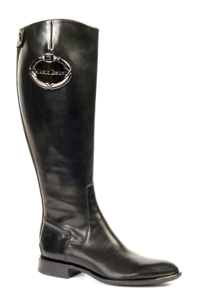 La collezione donna la possiamo definire una “new entry” per il marchio Mario Bruni. Introdotta da poco sul mercato esordisce con una proposta ancora limitata di modelli, pensati per una varietà di occasioni: le ballerine, i tronchetti, gli stivali (alti anche sopra al ginocchio che riprendono il trend attuale), fino ad arrivare alle décolletée e ai sandali gioiello per la sera. Anche per lei domina il contrasto lucido-opaco: coccodrillo, velluto e vernice stampata vengono declinati in una palette di tonalità che ricalca le atmosfere invernali come asfalto, verdone, testa di moro. Per completare e arricchire le calzature sfiziosi particolari quali scudetti e bottoncini arrotondati. Per la collezione a/i 2009/2010 Mario Bruni fa un tuffo nel passato riproponendo le forme rotonde con tacchi larghi; per la sera invece sceglie la raffinatezza e l’eleganza di sandali gioiello con tacchi alti e sottilissimi.