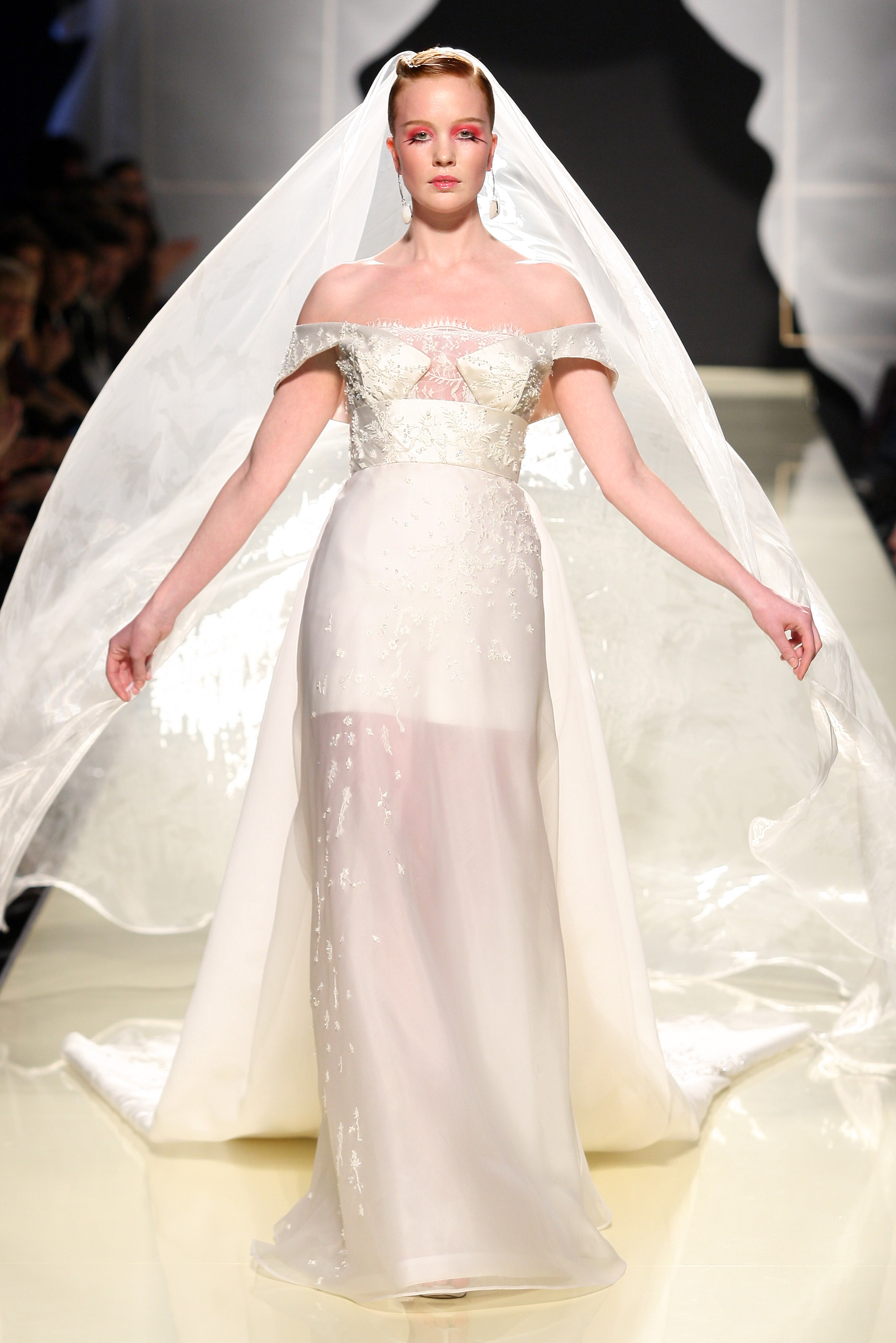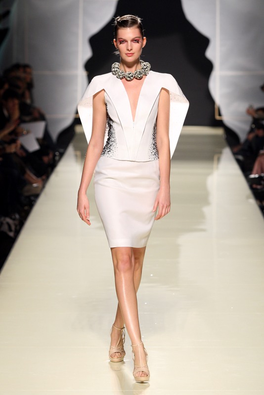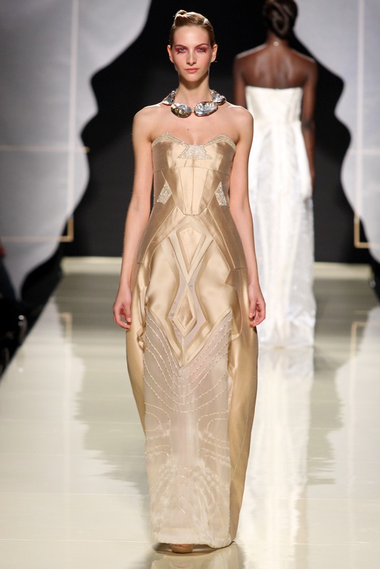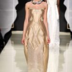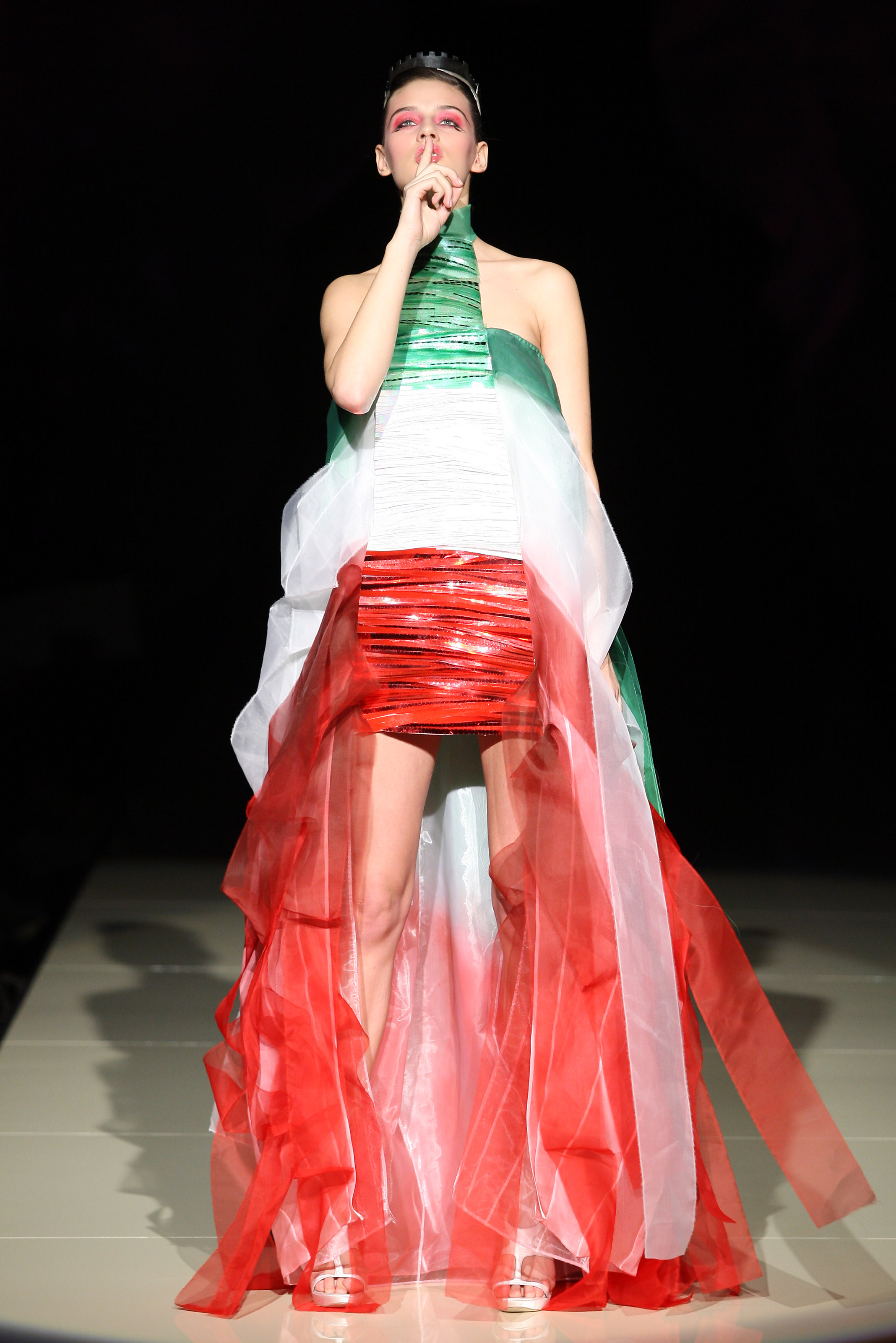 La sfilata di Gattinoni ha lasciato il segno. Un fil rouge lega gli abiti alla storia contemporanea: dai problemi globali a quelli della politica italiana.