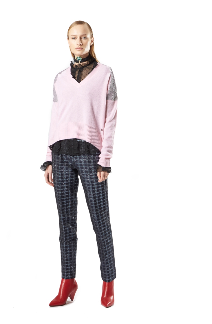 Tutto senza mai assumere toni stantii e al contrario, fatto con grande capacità di delineazione per comunicare uno stile sobrio dai toni pacati, morbidi e ben definiti. Lo vediamo nelle maglie e i capo spalla per lei, ma anche per lui, tradotti in morbidi e nobili filati di impalpabile e avvolgente cachemire, leggero come una piuma e caldo come i raggi di un sole di luglio. Capi fatti di purissima lana merino, adatta alle pelli più delicate, dalla consistenza morbida e rasata, ed anche di pura lana vergine, naturale, soffice e semplice. Tutto per accogliere, avviluppare, scaldare e confortare, tutto per donare al corpo sensazioni di agio, adeguatezza e compostezza; come i fluidi gilet in cachemire garzati e dall’effetto plume, arricchiti da inserti di paillettes anticate a pioggia o da broderie con tinte a contrasto.