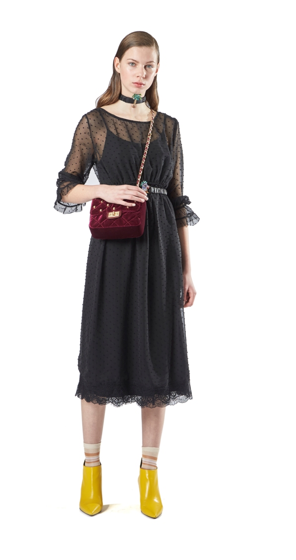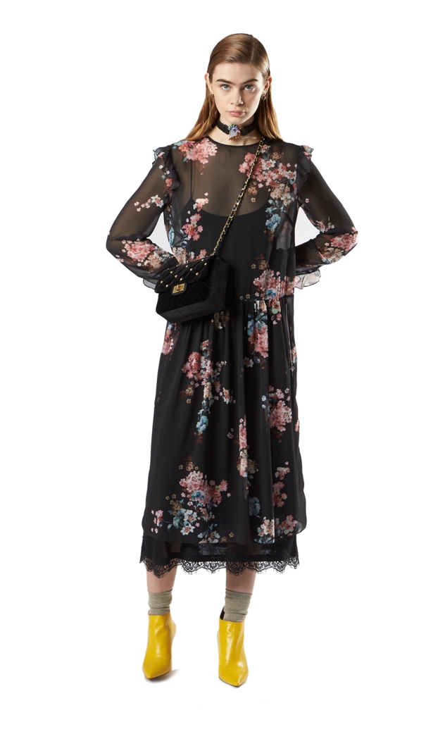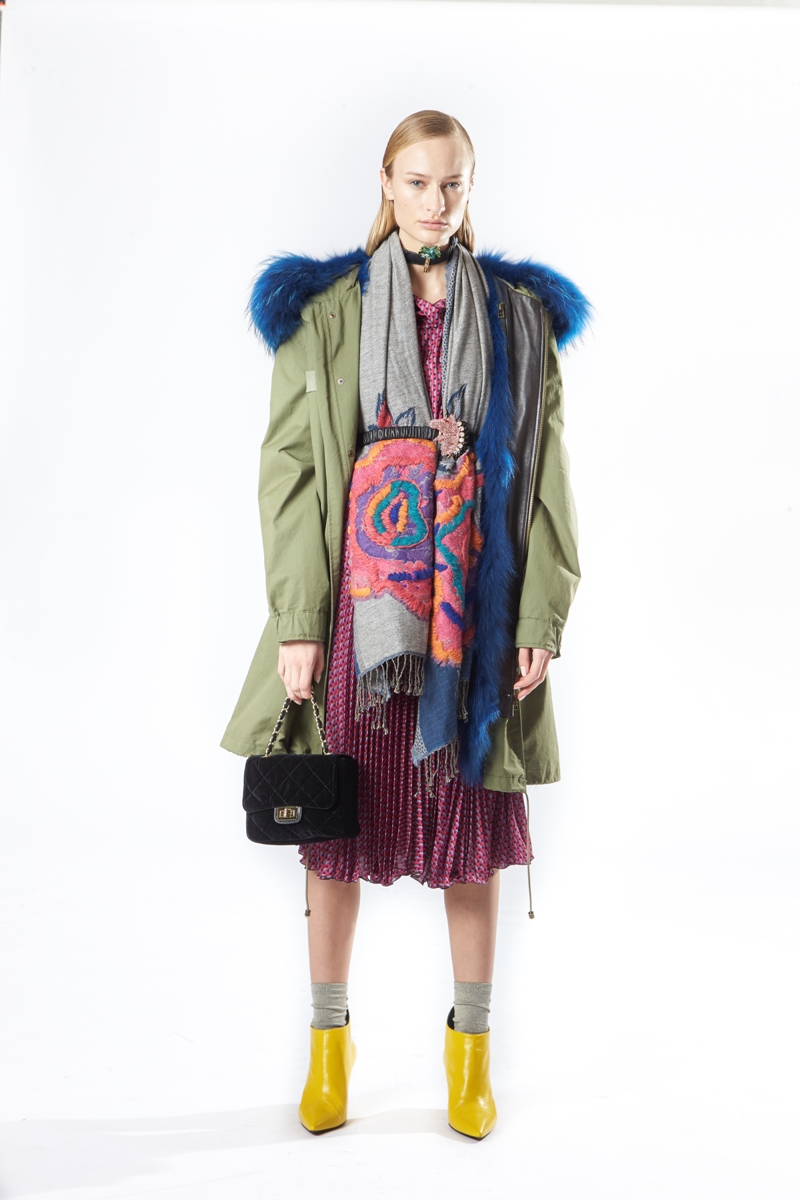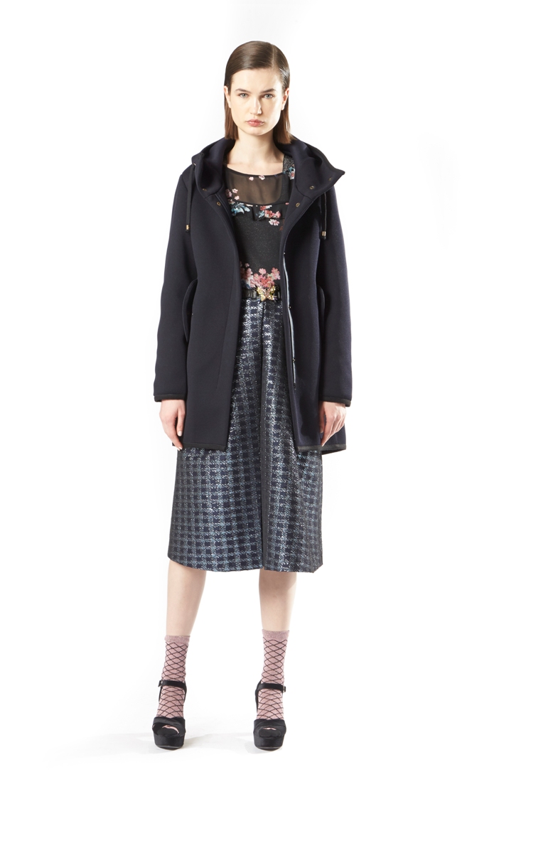 Altro protagonista per eccellenza è il parka, il giaccone fornito di cappuccio, originario della popolazione Inuit che veniva confezionato con pelli di renna o foca per proteggere dal freddo pungente. Il parka, è la giacca dalla forma sportiva e duttile, capace di ben combinarsi con capi altrettanto sportivi ma anche con mise delicate e femminili come le gonnelline in broccato e tuniche “fiorite” proposte dalla Maison.