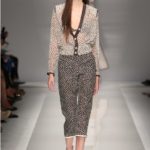 In evidenza l’eterno gioco dei contrasti, del positivo/negativo, dei profili -tantissimi e sottili-, delle gibigianne create dal lucido e opaco di certi tessuti, dello stile ora pretty ora bourgeois, ora scherzoso ora sofisticato.