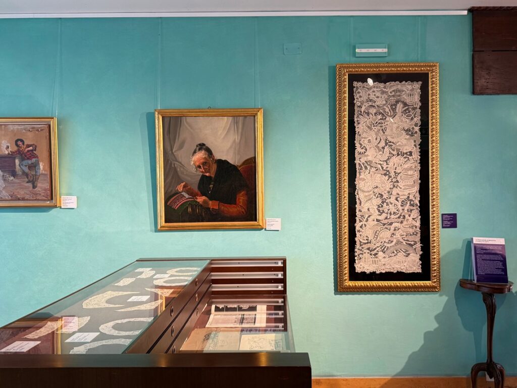 Si possono ammirare disegni preparatori, cartoni e pubblicazioni d’epoca, opere di artisti e progettisti quali Giulio Rosso, Fausto Melotti, Vittorio Zecchin, Giovanni Gariboldi e Tomaso Buzzi: si ripercorre così l’ascesa del merletto d’autore come autentica espressione artistica.