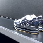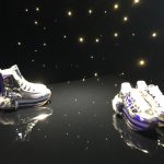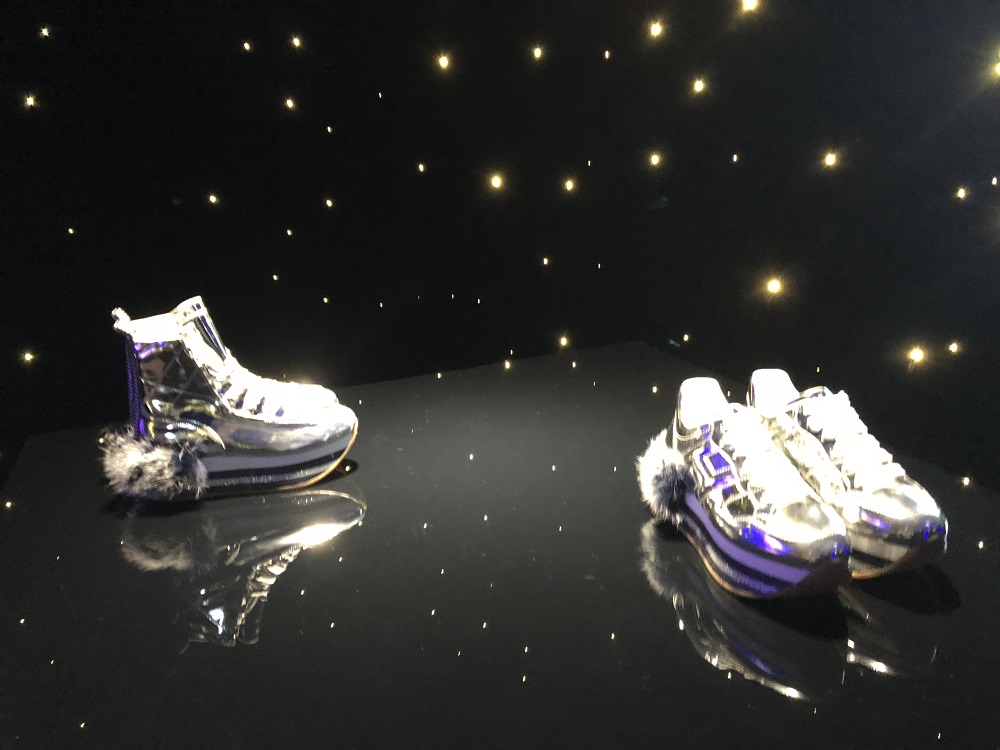 Pelle specchiata dalle mille sfaccettature per suole rainbow; eco-pelliccia flou per stivali perfetti; effetto “tuffato” per la audace sneaker bianca che sembra esser stata “a bagno” nel latte o in una sostanza interplanetaria.