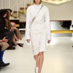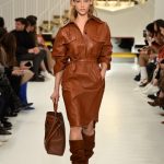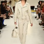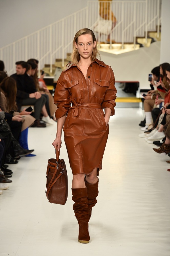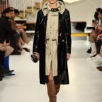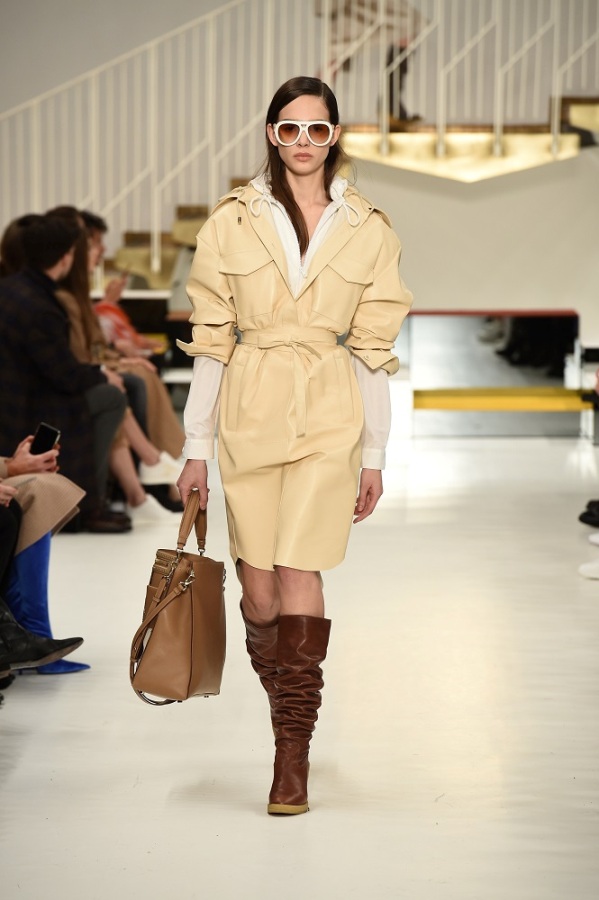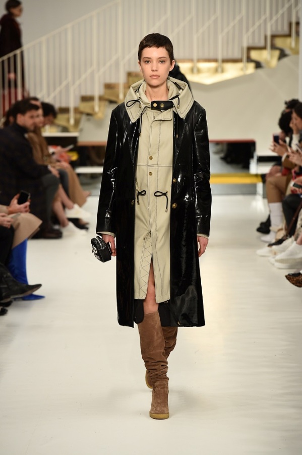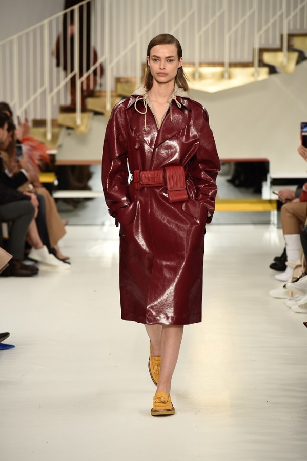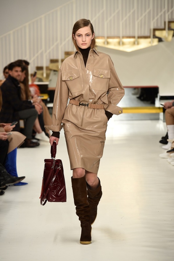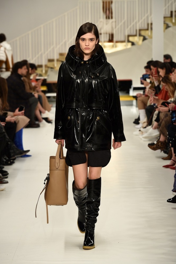 L’abito “buono” diventa più contemporaneo adornandosi di zip, la tuta vagamente over si disfa dei soliti panni rivestendosi di morbido camoscio, il trench si lascia alle spalle la gabardine classica osando adottare una divertente e lucidissima vernice.