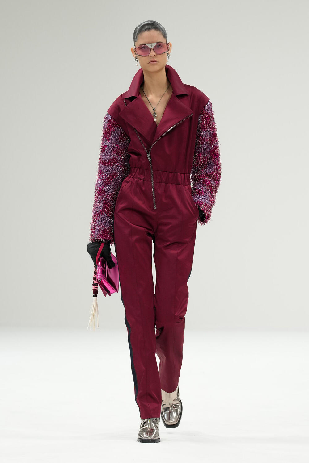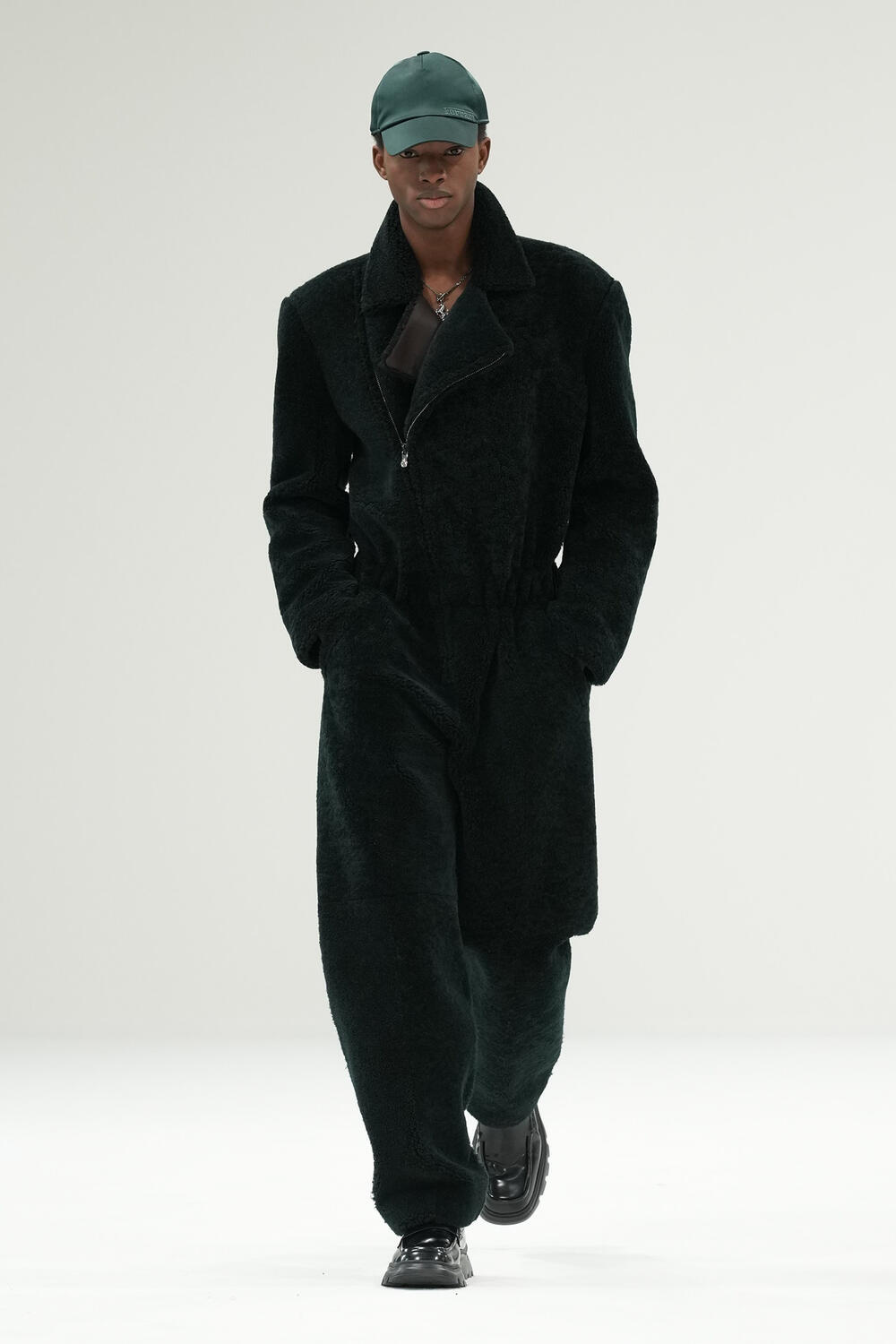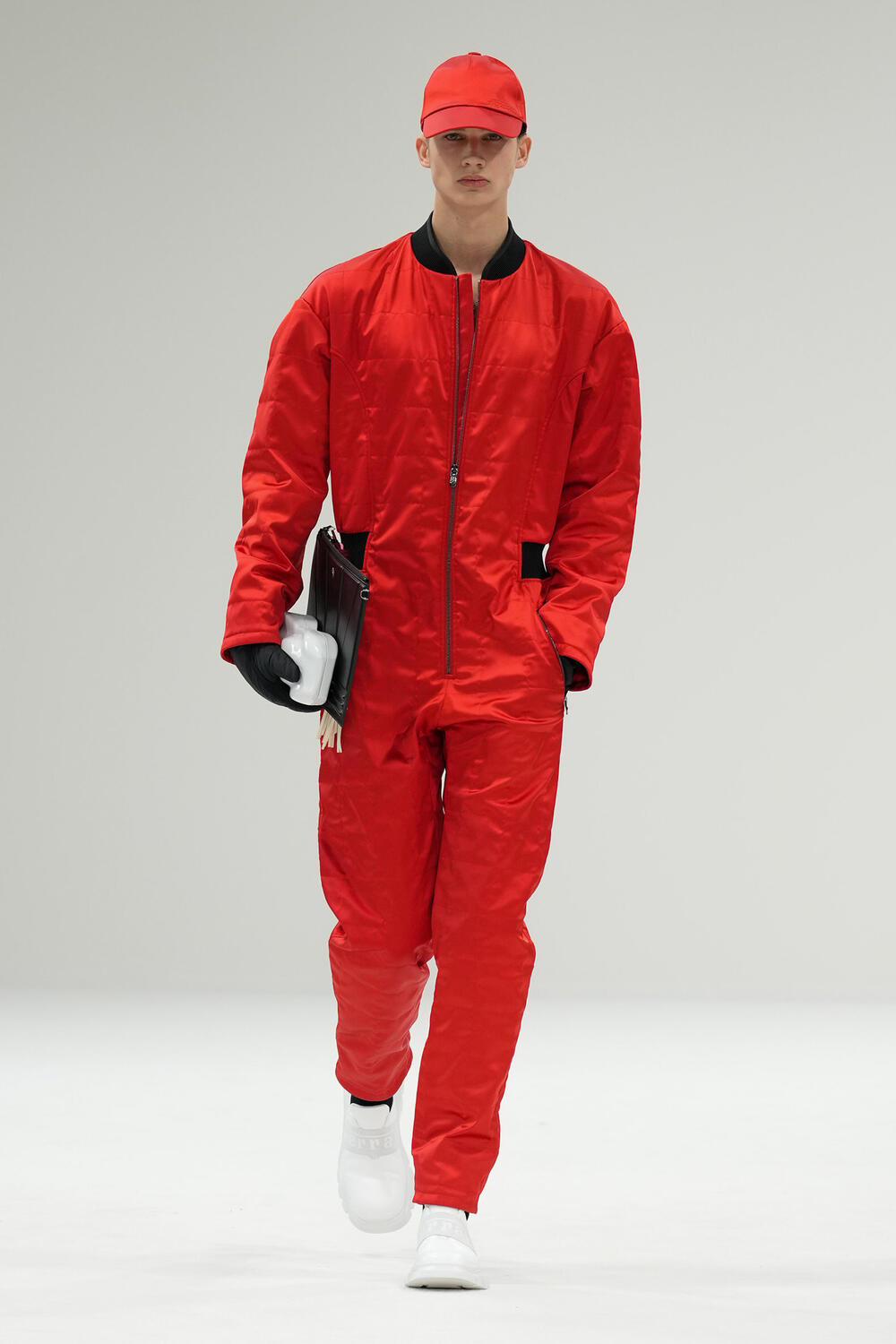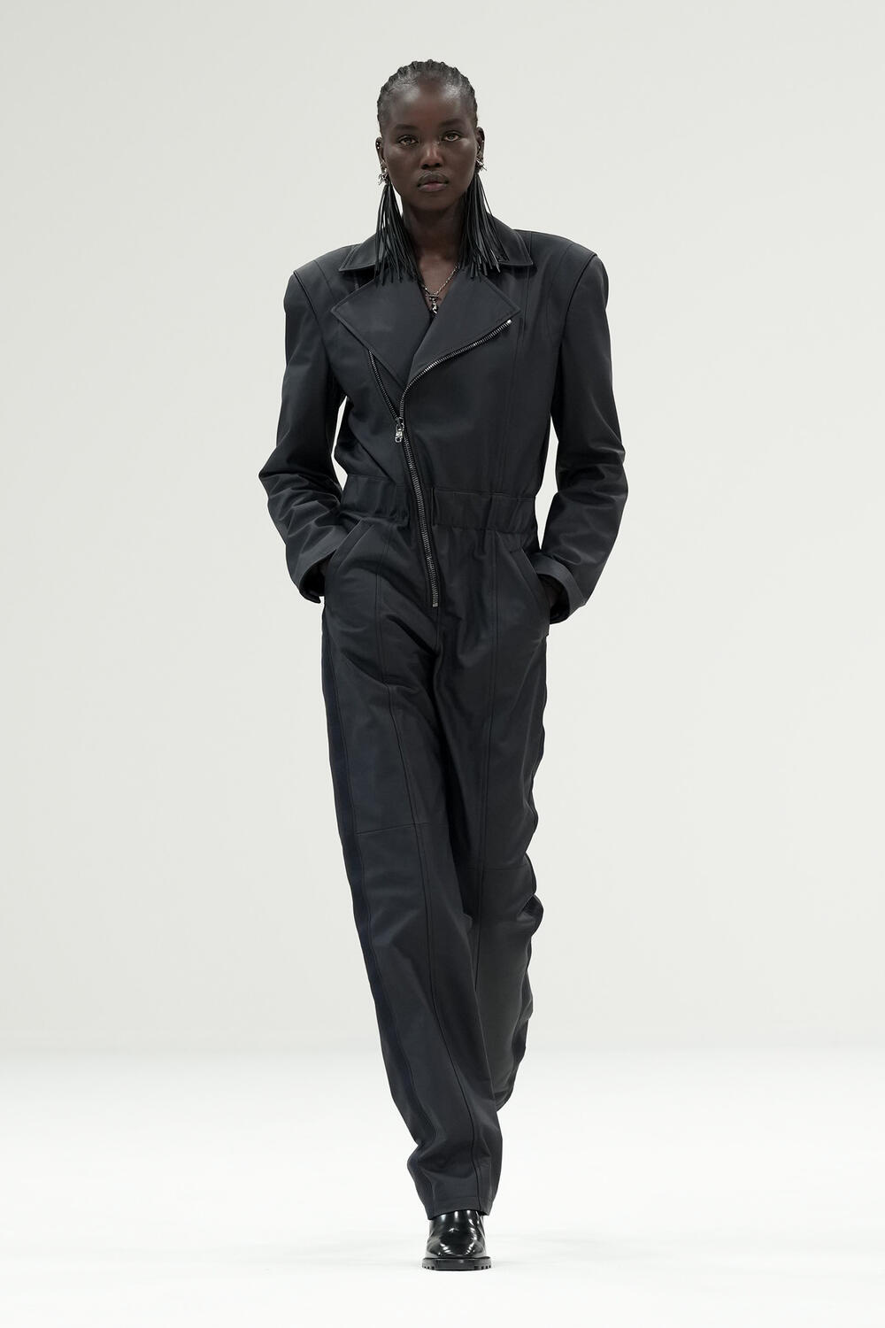 Le note stilistiche del lavoro di Iannone per la collezione A/I 2023-24, oscillano da linee semplici, a volumi esagerati come i pantaloni a mezzaluna, passando per le tute molto asciutte e i capispalla sartoriali over, tanto per lei come per lui, neri con fodera in rosso o bianchi, e i capi imbottiti, come la gonna trapuntata rossa o i giubbini imbottiti o meno ma con grandi tasche sul petto. La chiusura asimmetrica tipica delle tute dei meccanici ricorre con frequenza su molti capispalla chiusi con un morsetto o con bottoni.