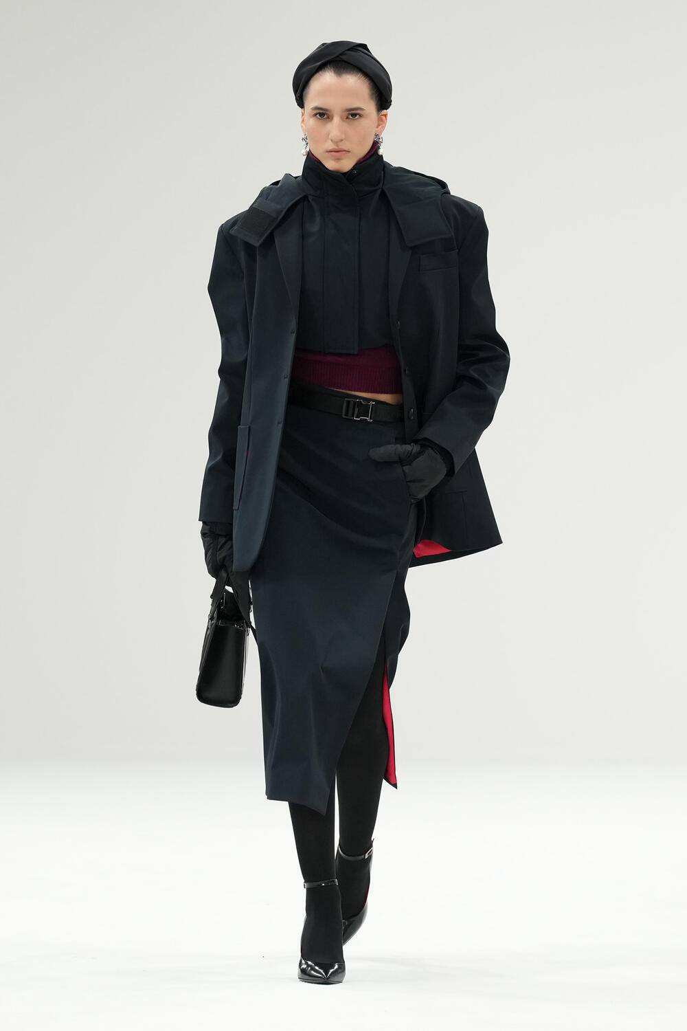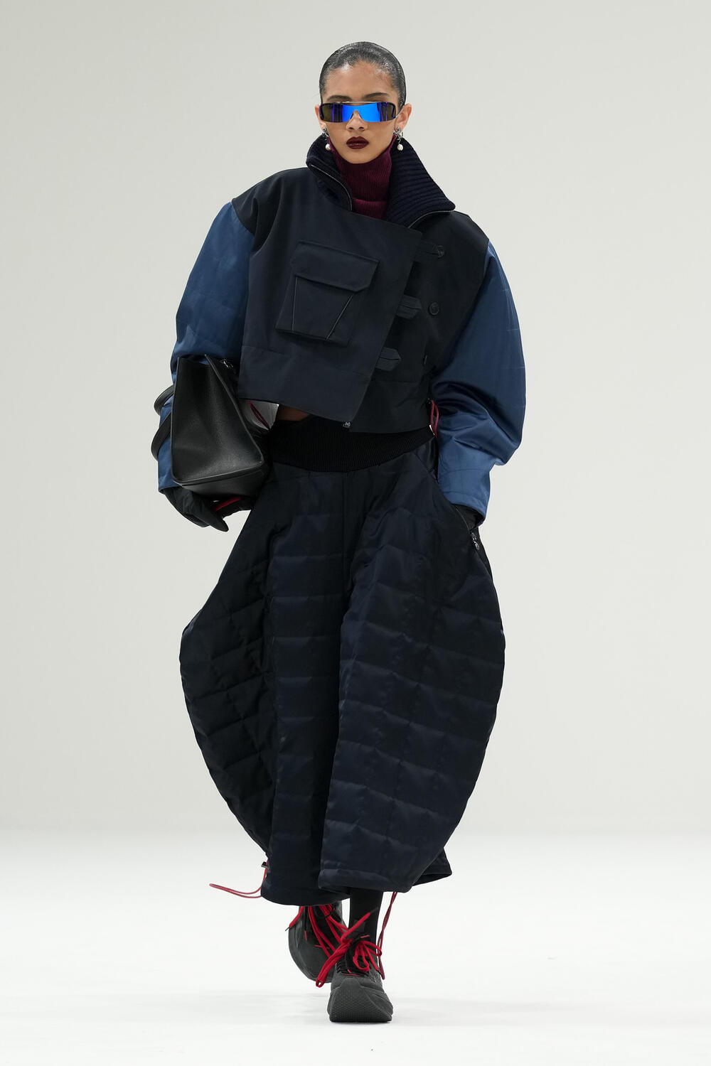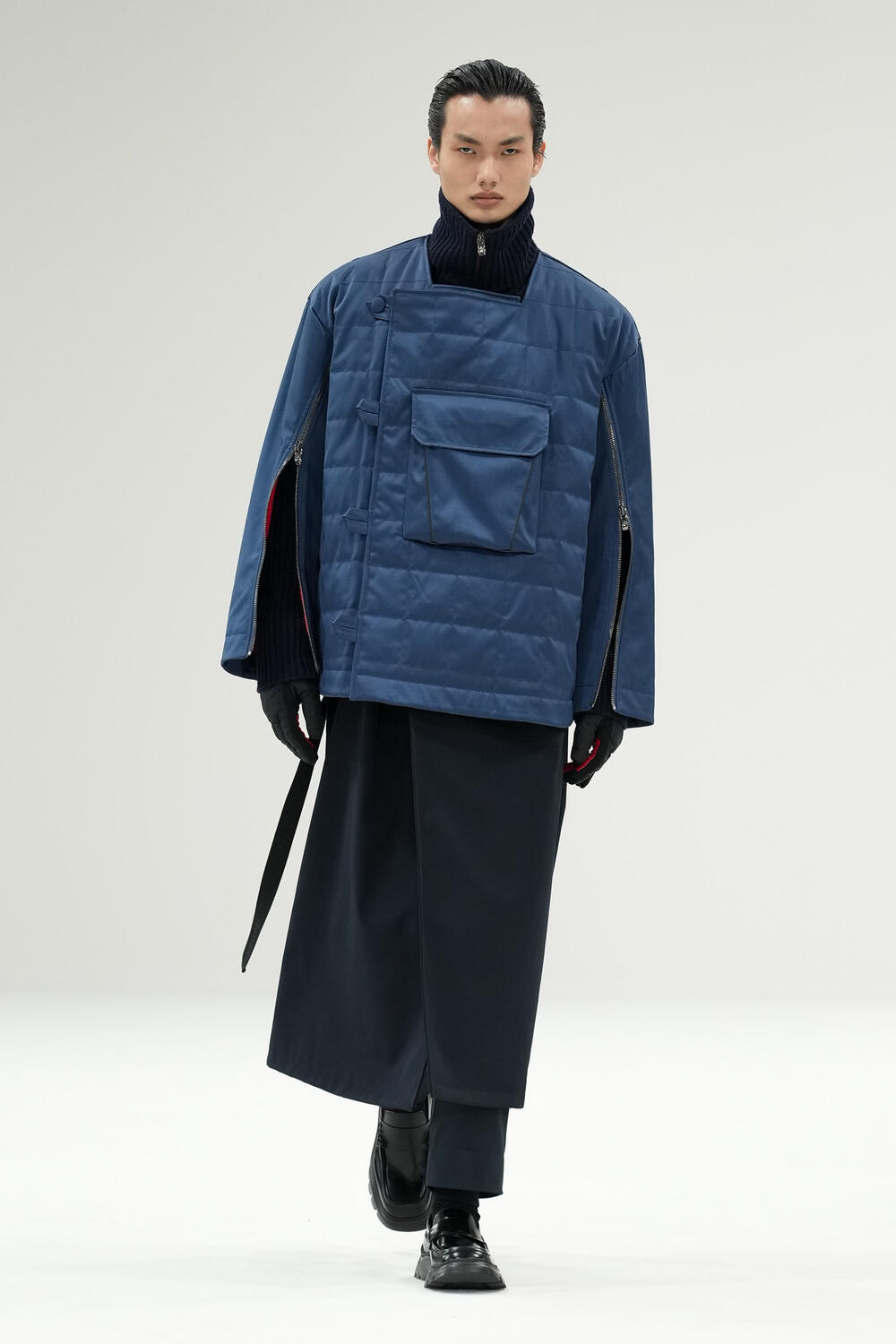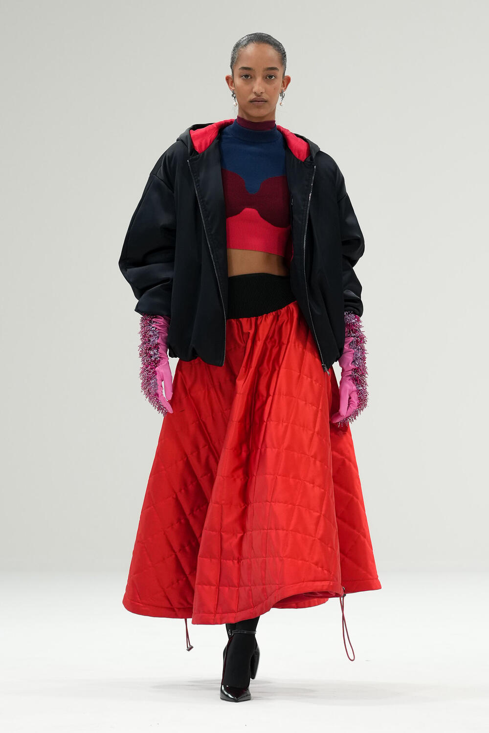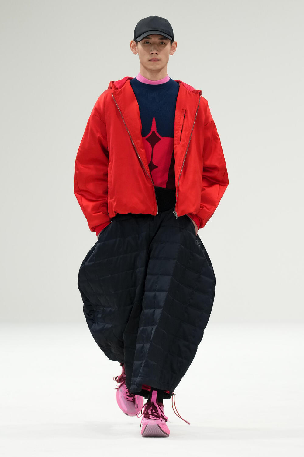 Le note stilistiche del lavoro di Iannone per la collezione A/I 2023-24, oscillano da linee semplici, a volumi esagerati come i pantaloni a mezzaluna, passando per le tute molto asciutte e i capispalla sartoriali over, tanto per lei come per lui, neri con fodera in rosso o bianchi, e i capi imbottiti, come la gonna trapuntata rossa o i giubbini imbottiti o meno ma con grandi tasche sul petto. La chiusura asimmetrica tipica delle tute dei meccanici ricorre con frequenza su molti capispalla chiusi con un morsetto o con bottoni.