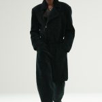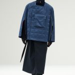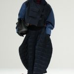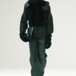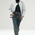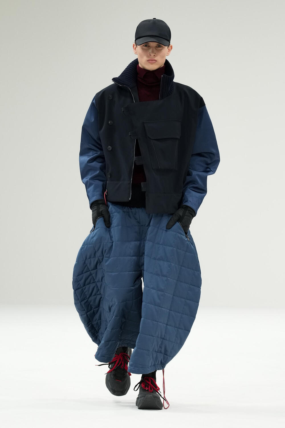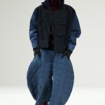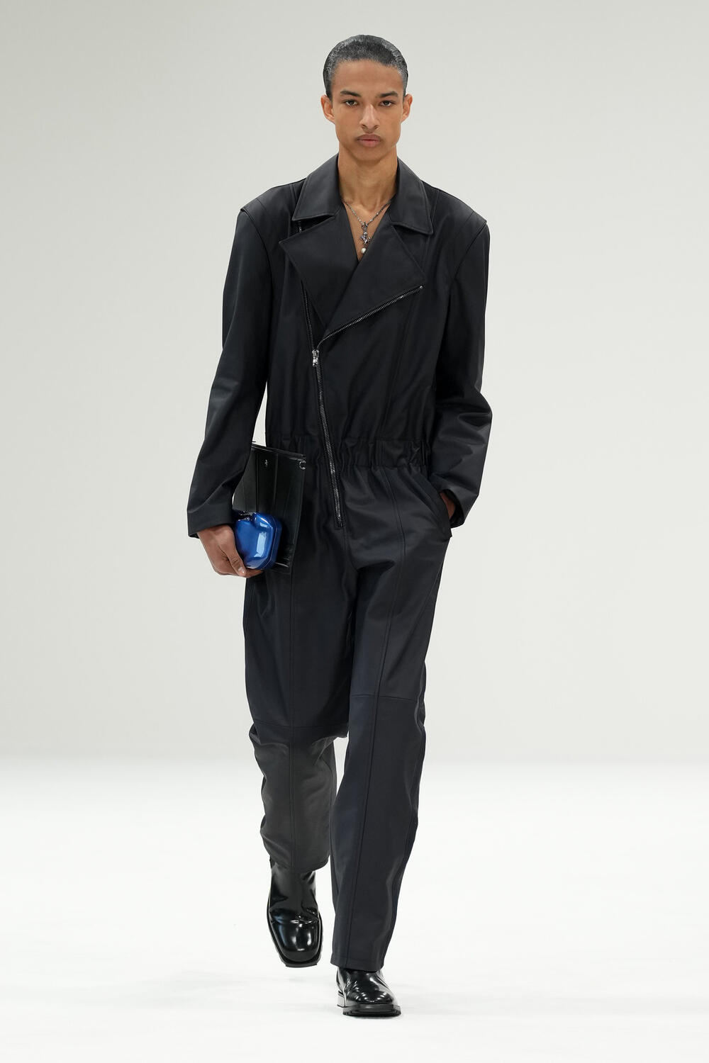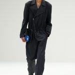 Nella sequenza dei capi in denim -che non convince molto-, il tessuto ha un aspetto usurato, come le tute del lavoro in officina, grazie a trattamenti speciali del tessuto. I pantaloni jeans accompagnano anche giacche e spolverini molto eleganti. I completi pantaloni e giacca lasciano pensare ad un utilizzo, in realtà poco probabile, per la giornata di lavoro in ufficio.