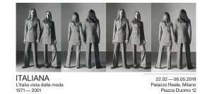 L’edizione febbraio 2018 di Milano Moda Donna, si caratterizzerà per la celebrazione dei 60 anni della fondazione della Camera Nazionale della Moda Italiana con l’ evento/mostra aperta al pubblico fino al 6 maggio 2018 “ITALIANA. L’Italia vista dalla moda 1971-2001”, a cura di Maria Luisa Frisa e Stefano Tonchi, promossa da Camera Nazionale della Moda Italiana, Comune di Milano e Palazzo Reale, con il supporto del Ministero dello Sviluppo Economico e ICE Agenzia, la collaborazione di Pomellato e dei manichini di La Rosa; main partner Yoox-Net-A-Porter. “La mostra “ITALIANA. L’Italia vista dalla moda 1971-2001” che ospiteremo a Palazzo Reale -ha sottolineato l’Assessore alle Politiche per il Lavoro, Attività Produttive, Moda e Design del Comune di Milano Cristina Tajani– è un modo per offrire a tutti gli amanti del bello ben fatto una diversa prospettiva per conoscere e scoprire il dialogo fra il sistema della moda, la società italiana e Milano” E riallacciandosi all’edizione di settembre ha evidenziato come “In questa edizione di febbraio proseguiamo nel percorso di apertura verso il grande pubblico raccontando non solo la filiera italiana del tessile e della moda ma soprattutto il saper fare manifatturiero, la creatività del Made In Italy”.