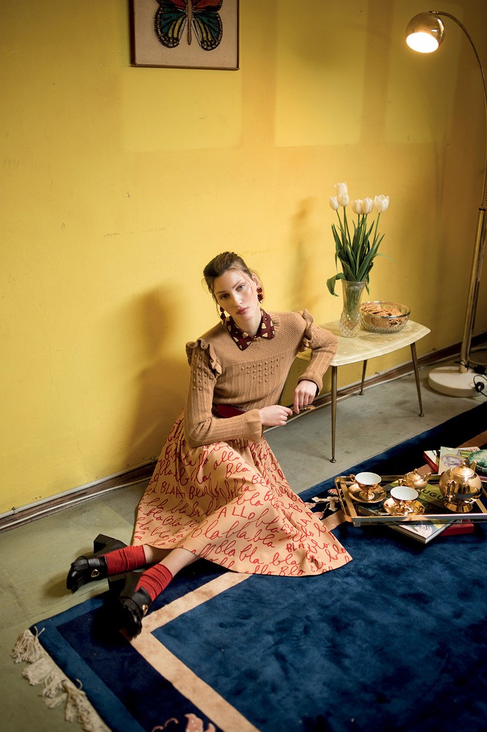 Ed ecco la quieta lentezza del mattino “che ha il glamour in bocca” con i toni del biscotto e del caffellatte sui capi dai volumi soffici e avvolgenti.