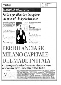 Dopo quello della Cultura, il “Sole-24 Ore” ha proposto il Manifesto della Moda alla vigilia delle sfilate di Milano Moda Donna P/E 2014, con l’obiettivo dichiarato di rilanciare il capoluogo lombardo come capitale del made in Italy. Sei le mosse individuate: investire sul territorio, garantire maggiori risorse alla creatività, offrire formazione a tutto campo per ogni profilo (dal management allo stile), predisporre incentivi fiscali, aiutare l’internazionalizzazione, puntare sulla solidarietà di sistema delle imprese leader verso i fornitori. Un bell’impegno dunque, a cui speriamo che la nostra classe politica presti (finalmente) attenzione!