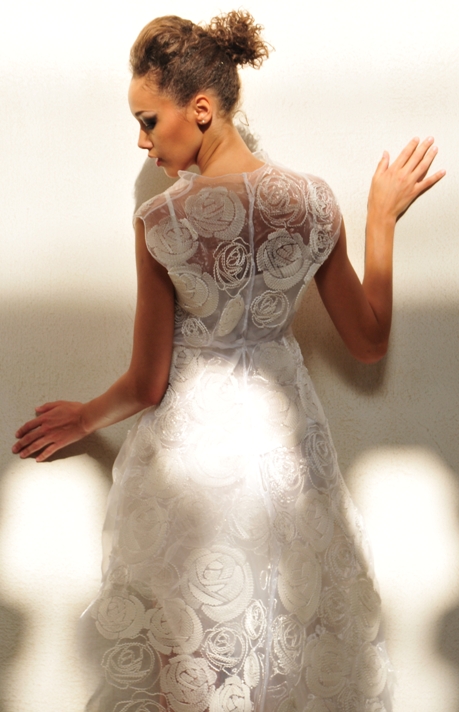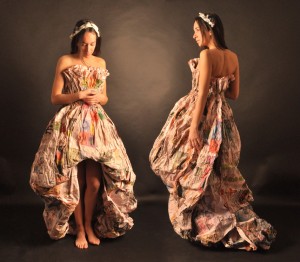 L’evento evidenzia innanzi tutto la volontà del progetto, che si può definire “una sperimentazione didattica per la progettazione di artefatti” (cfr. catalogo pag.15), di dare spazio a nuove sperimentazioni materiche. Il progetto ha di fatto mutato da questa edizione il suo titolo da Fashion Paper verso Fashion in Paper 2011 dove l’in è preludio a materie diverse. Tanto che il prossimo anno troveremo scritto Fashion in Palstic 2012, e così di seguito anno dopo anno -legno, tessuto, alluminio, ecc-, per esprimere la creatività che quello specifico materiale potrà suggerire agli studenti più geniali. “Con la creazione di questi prototipi, -avverte ancora Arianna Piazza- si arriva a smantellare l’idea che l’ispirazione è un sogno con il quale ci si sveglia all’improvviso una mattina. L’ispirazione è lavoro. Creare ha bisogno di tempo, è una lunga sperimentazione, un continuo confronto con le tecniche nel tentativo di una definitiva elaborazione creativa“; ma anche una conoscenza approfondita delle caratteristiche e dei comportamenti dei materiali. Bisogna inoltre aggiungere competenze di modellistica e confezione come si presume in chi vuole realizzare un abito, un accessorio o un gioiello. Non manca neppure la conoscenza di storia della moda. Uno degli alunni presenti in sala racconta con entusiasmo che per il suo copricapo “Radiomorfosi” si è ispirato al surrealismo di Elsa Schiapparelli. E non manca neppure quel pizzico di ironia che sanno mettere i creativi veri per non prendersi troppo sul serio; come nell’abito “Aeki” fatto con i metri di carta Ikea quasi a suggerire la possibilità che in fondo ognuno di noi può montare da sé il proprio abito.