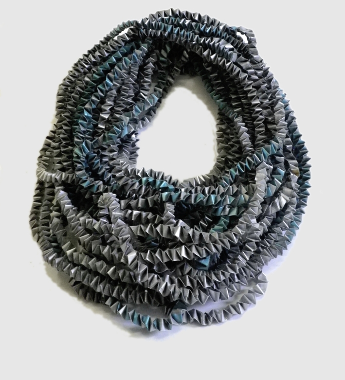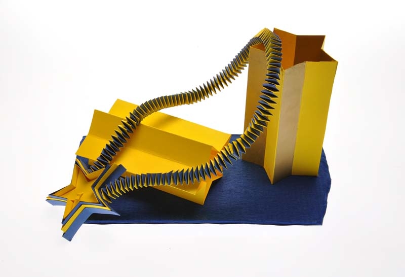 Nel percorso della mostra si nota come gli studenti hanno cercato di dare nuova espressività alla materia carta sfruttandone la capacità tridimensionale, per creare oggetti e forme inusuali: cappelli scultura, copricapi di cartone, collane di cartoncino ondulato, abito fatto di carta arrotolata e poi tessuta o intrecciate ad uncinetto; un corpetto di carta arrotolata a mano, effetto pelliccia e più specificatamente, secondo un trend di stagione, effetto mongolia; il decoro di carta da imballo per biscotti, cucito su organza; abiti di scena realizzati dagli alunni del Corso di scenografia che rivelano l’eccezionale plasticità della carta di approdare ad una tridimensionalità a partire dalla bidimensionalità del foglio. E’ evidente che la realizzazione degli oggetti presentati ha richiesto un grande manualità studio, lavoro e tanta fantasia, ed anche conoscenza ed approfondimento della tecnica dell’origami per sperimentare con essa nuove possibilità tridimensionali.