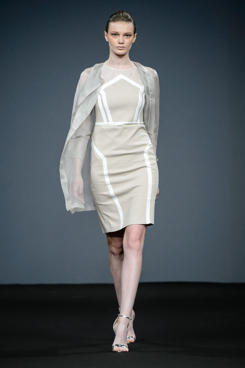 Le linee della collezione ricalcano gli anni sessanta -con l’allure tipica di quel periodo, ordinata e pulita, sobria e sofisticata-; si distinguono tuttavia per i canoni stilistici attuali capaci di fare della decostruzione un emblema: una scomposizione soft, moderna e contemporanea del sublime rigore tipico di quegli anni.