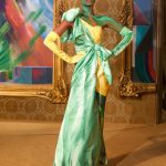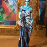 La foresta tropicale ci mostra la fauna che la popola: uno spettacolare fenicottero il cui collo diventa la scollatura dell’abito, un leopardo bustier; e non mancano gli abiti adatti ad un safari, dotati di originali soluzioni per portare addosso tutto il necessaire beauty di una donna: pennelli, pettini, pinzette portacipria.