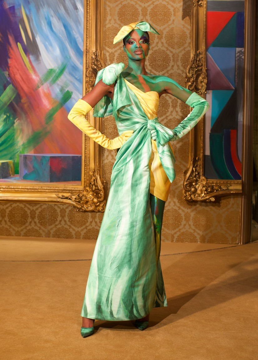 Gli abiti da pomeriggio in giallo, nero, bluette sono ambientati in un museo. Da un grande quadro bàlzano gli abiti da sera dalla silhouette voluminosa e tessuto dipinto con pennellate post-Impressioniste che proseguono sul corpo delle modelle. Per concludere Jeremy Scott ci porta ad una serata di gala anni’40 dal clima hollywoodiano, con abiti rosa tenue, fucsia, nero, oro.