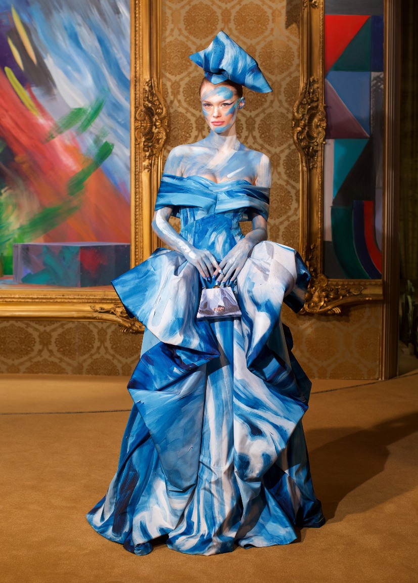Ironia e ancora ironia. Le modelle -il sipario è aperto da Miranda Priestly de “Il diavolo veste Prada” per ricordarci che stiamo assistendo ad un fashion show- passano davanti alla telecamera quasi si trattasse di un set cinematografico, dietro uno scenario che cambia continuamente.