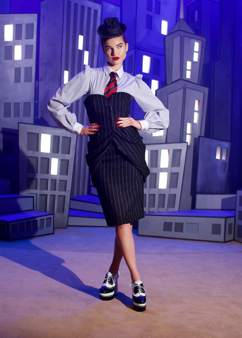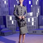 I grattacieli di N.Y ambientano i City dress gessati e il tailleur che riproduce all’infinito i numeri adatto a non sfigurare negli ambienti finanziari.