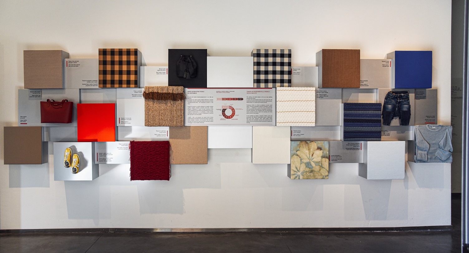 Accanto all’archivio e ad esso strettamente collegata una nuova area espositiva – riservata alla circular economy e all’innovazione nel tessile e nella moda- che “vuole essere non solo uno strumento di conoscenza del tessuto contemporaneo, ma anche di educazione al consumo consapevole” dichiara Francesco Nicola Marini, Presidente del Museo del Tessuto. Si tratta di un percorso tattile dedicato alla conoscenza delle materie prime e dei processi di trasformazione, tra cui sarà possibile trovare una borsa in pelle realizzata dagli scarti della mela, pelle vegana dalle foglie del cactus messicano, scarpe che impiegano cellulosa estratte da foglie di ananas, tessuti in cashmere e lana riciclati, materiali in lino e cotone esclusivamente biologici, fibre in nylon riciclato o in poliestere biodegradabile in acqua marina, maglieria in denim riciclato: materiali ecosostenibili.