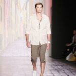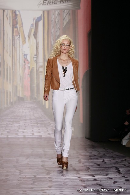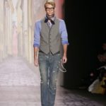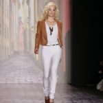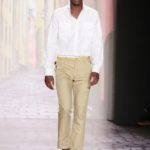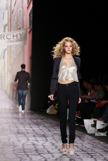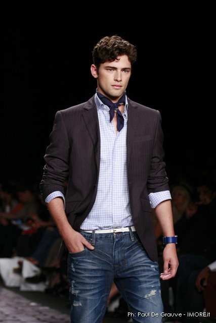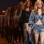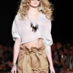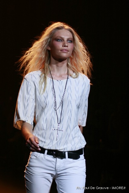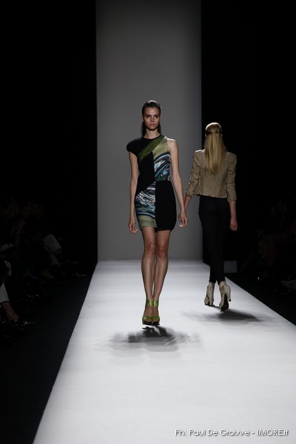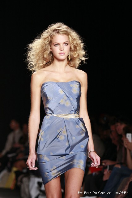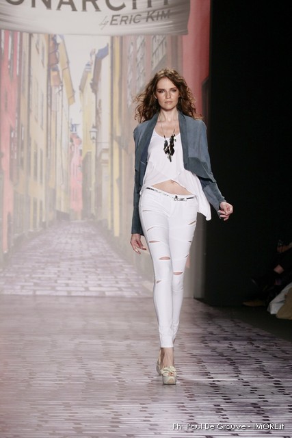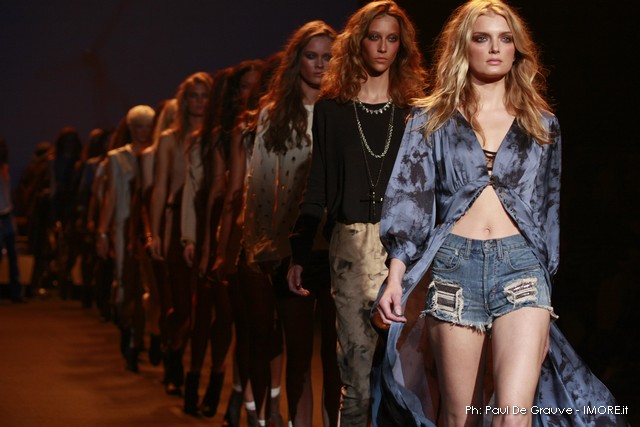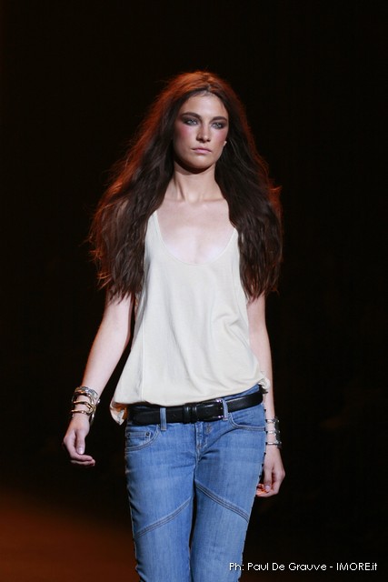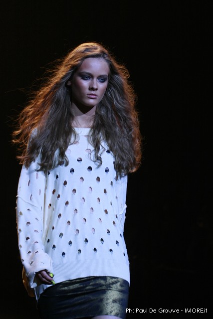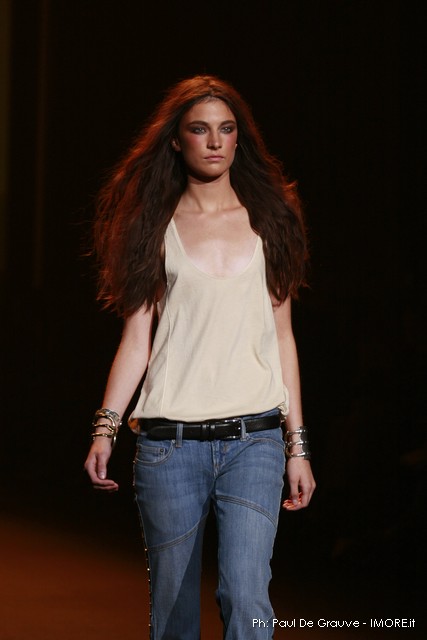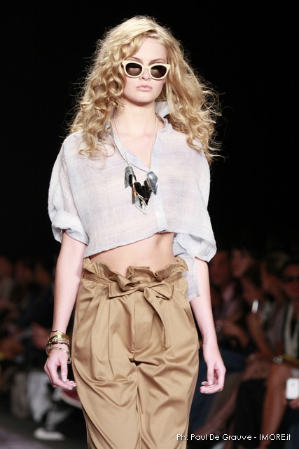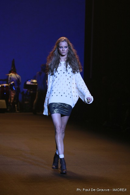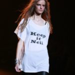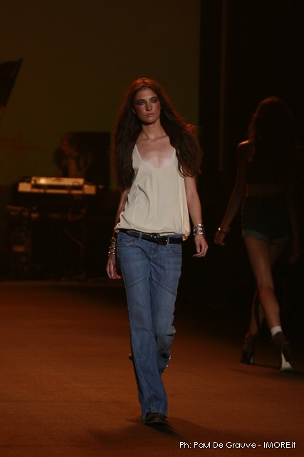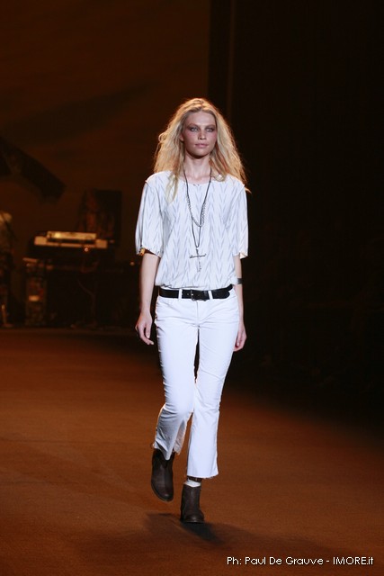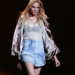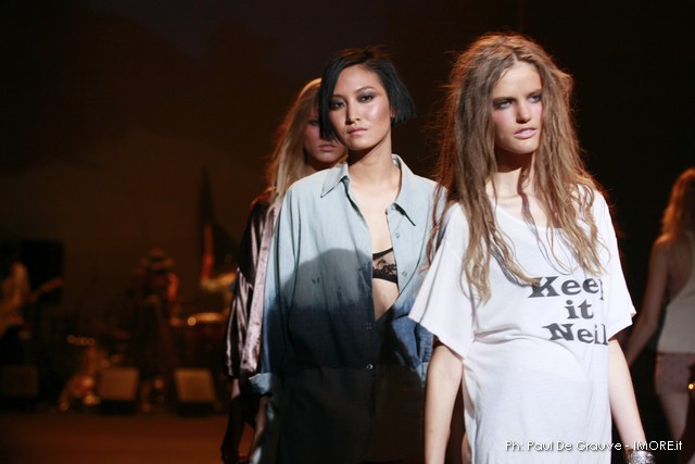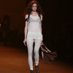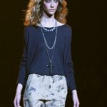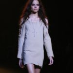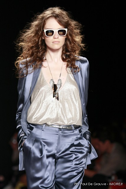La moda americana, è fatta anche di suggestioni che traggono origine dal vissuto recente di questo continente. C’è stato un tempo, e per molti c’è ancora, in cui la mecca era la west cost quella del deserto e delle onde del pacifico, con le tavole da surf sul pulmino Volkswagen bicolore. Da questo parte l’immaginario della modella Erin Swasson. La passerella ha come sfondo un enorme schermo dove vengono proiettate immagini virate al giallo come sarebbero le vecchie pellicole degli anni 70 se le guardassimo oggi. Ma qui si vuole essere “multimedialmente” concettuali ! Per il resto la collezione non ci ha favorevolmente impressionato, qualsiasi ragazza nel Mondo potrebbe comprare le stesse cose in qualsiasi mercatino ed abbinarle a suo gusto. Un tratto distintivo? L’assoluta mancanza di qualsiasi eleganza.