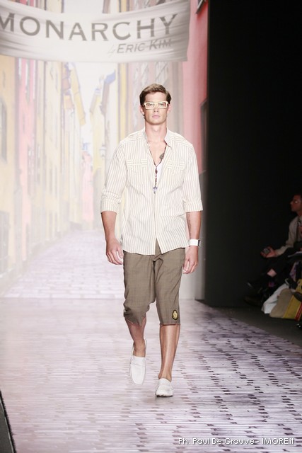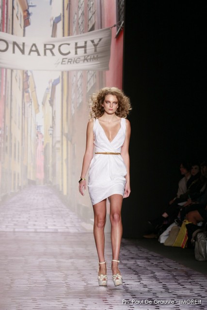 È abbigliamento “ready to wear” giovanile quello di Monarchy ma la qualità , la raffinatezza nei disegni e anche nei tessuti, balza subito all’occhio. Organza bianca, jersey, satin dai colori blu navy o argento, lino, jeans, un accenno di pelle e di lana sono i principali materiali utilizzati per questa collezione. I principali colori sono quelli del crema, avorio, blu , grigio, denim, bianco e argento. I tagli sono ricercati, anche su dei capi pensati ognuno per essere un pezzo passe-partout, enfatizzano i decolleté il punto vita. I volumi sono comodi ma non esagerati. Un fazzoletto al collo, un foulard o una sciarpa utilizzata come ascot e accessori metallici completano il look Monarchy primavera estate 2010.