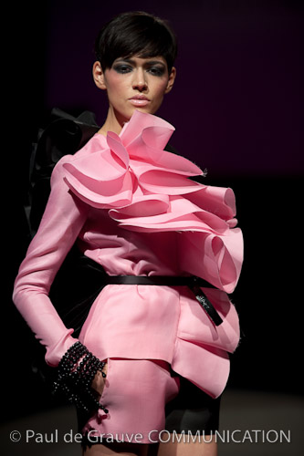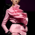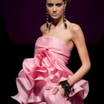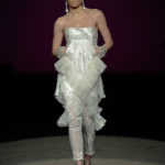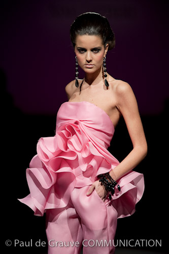 Da notare comunque la buona sartorialità dello stilista campano che si mette in evidenza nelle voluminose rouches, ben realizzate nel corpino bustier rosa su pantalone rosa.