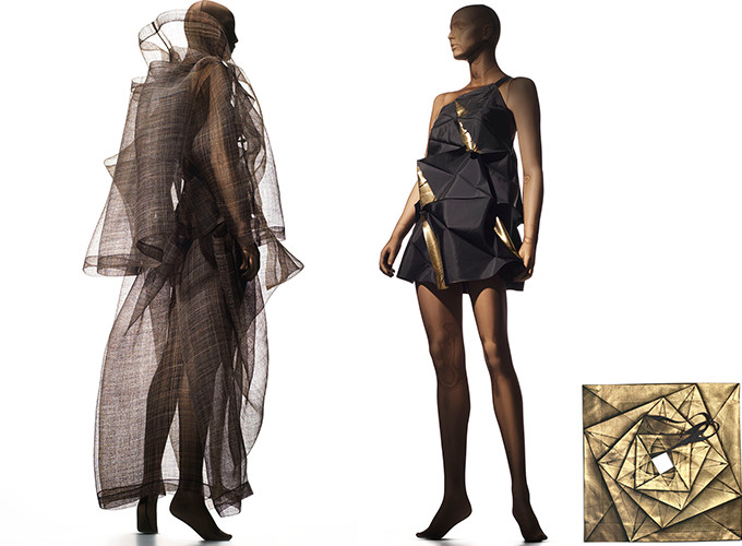 Un duplice omaggio, con un libro e una mostra, al visionario stilista giapponese Issey Miyake, che negli anni ’80 ha “silenziosamente” rivoluzionato la moda in nome della libertà di movimento, ovvero della grazia del corpo al naturale, concependo volumi androgini, iconoclasti delle forme tradizionali, evocativi di origami di carta pieghettata. Ha ideato così un nuovo genere di prêt-à–porter, che attinge a materiali e forme consoni al design industriale, ottenuti con processi produttivi all’avanguardia: carta metallica pressata a caldo, plissè, fili sintetici attorcigliati, jersey rinforzato, carta imbevuta d’olio. “La mia aspirazione é quella di andare avanti, di rompere gli schemi” era il suo motto.