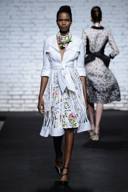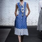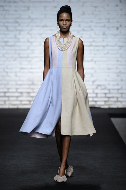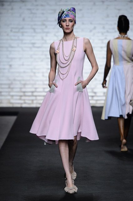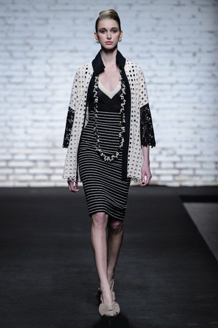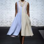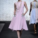 La collezione è ricca di abiti dalle linee scivolate e leggermente avvolgenti; ricca anche, la proposta degli chemisier allacciati sul retro con ampia cintura di stoffa in tessuto a contrasto. Molte le linee a trapezio e a tulipano. I pantaloni sono ampli, a vita alta e con fasce verticali o orizzontali alla caviglia.