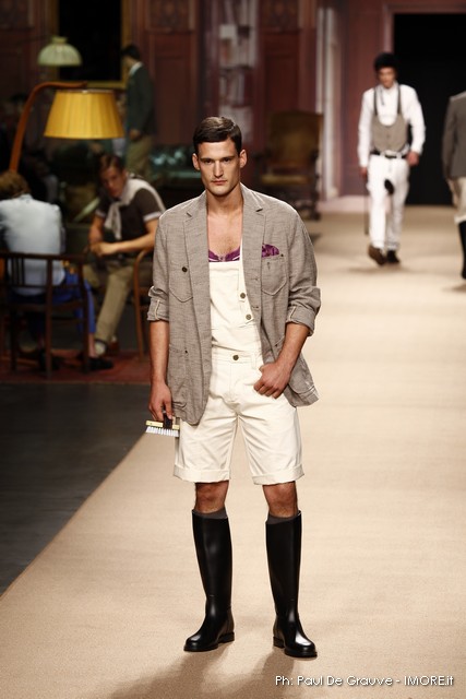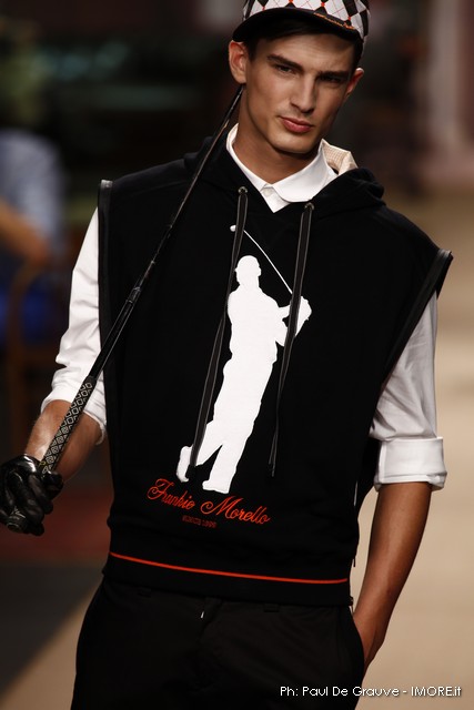 C’è voglia di ricreazione, di svago, nel club stile british per “soli uomini” messo in scena per la sfilata primavera estate 2010 di Frankie Morello a Milano Moda Uomo.