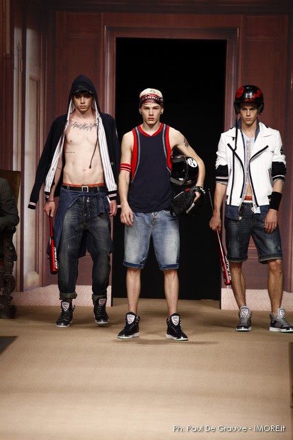 Si ispira allo sport il duo creativo formato da Pierfrancesco Gigliotti e Maurizio Modica e così equitazione, baseball e golf divengono i luoghi nei quali ambientare la collezione , saccheggiati nei simboli, nei caratteri e negli oggetti tipici.