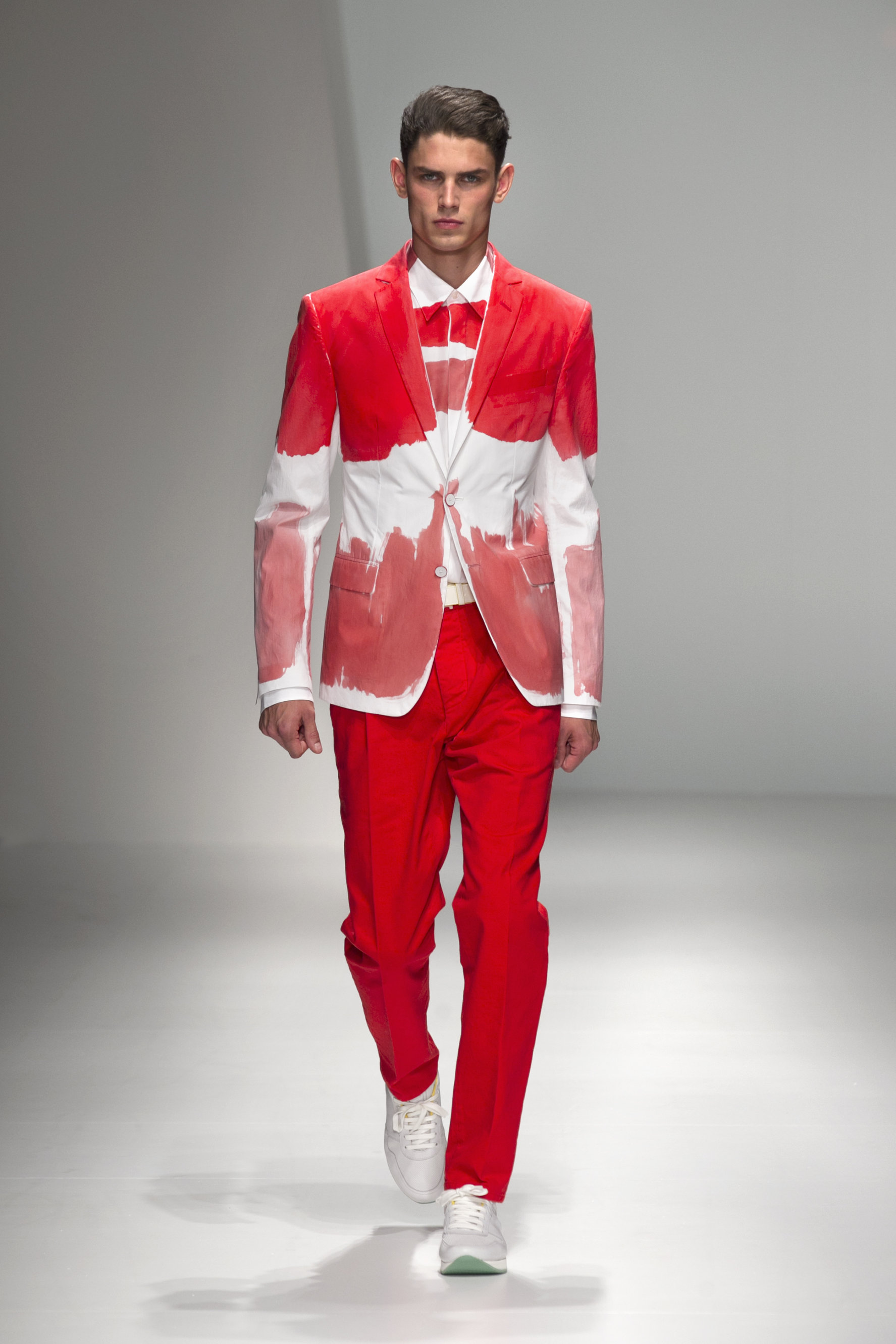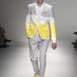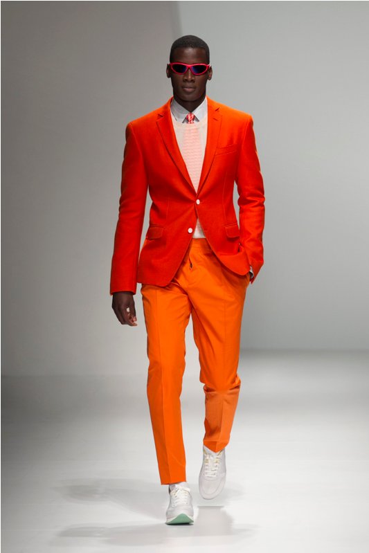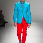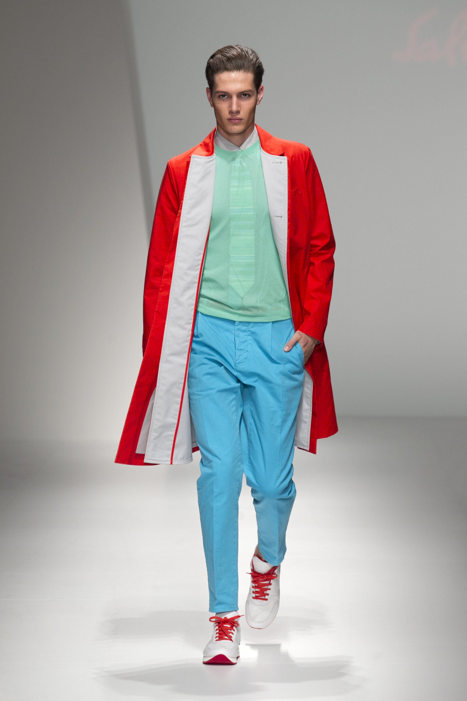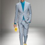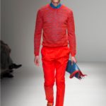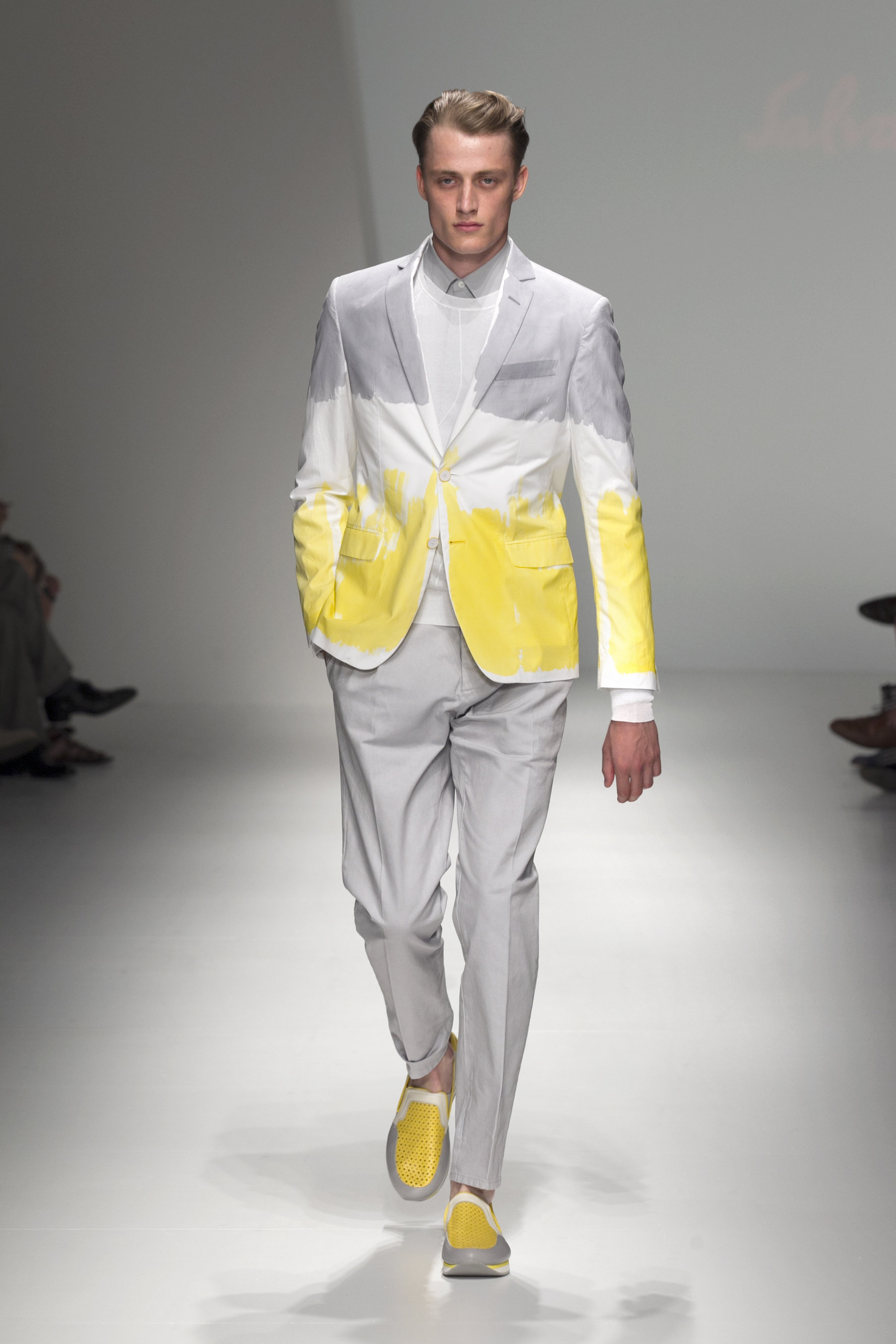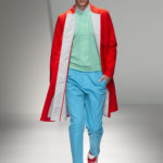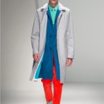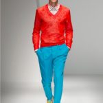 Colore, colore, colore. Voglia di pensare in positivo e caricarsi di energia. La collezione Ferragamo sembra sintetizzare la tendenza già notata a Firenze e riaffermata a Milano di vestire con il colore l’abbigliamento maschile. Operazione riuscita? Gli accostamenti sono azzardati e giustificati non tanto con un registro di eleganza quanto con l’ispirazione che Massimiliano Giornetti ha dichiarato: l’arte di Davide Hockney, Andy Warhol e alla pop art.