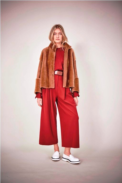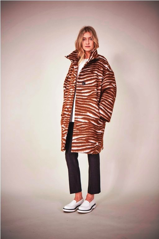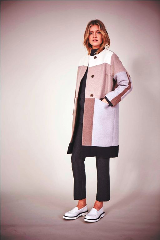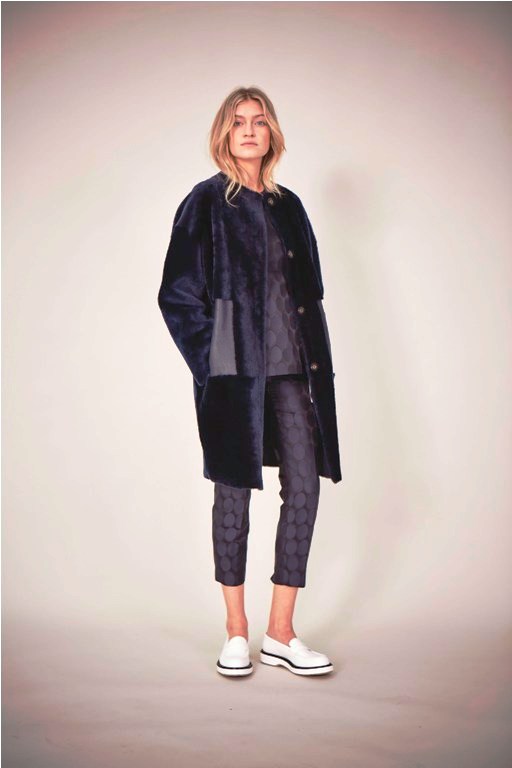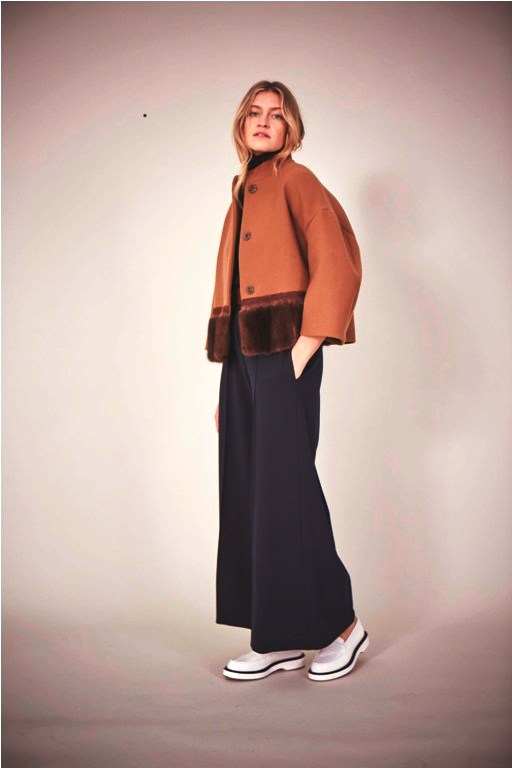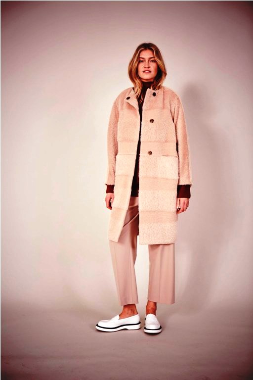 Alpaca rasata o jacquard con irregolari striature animalier, sherling e tricot di lana, rappresentano la scelta approntata per giacche e cappottini dalle linee ad uovo, dritte o svasate; molto interessanti i montoncini reversibili.