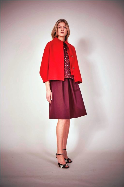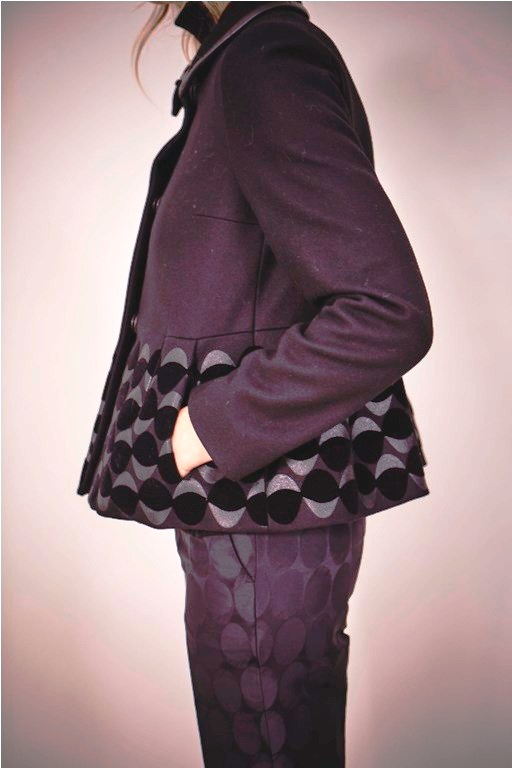 Double di lana strutturano cappe e gilet ; filati di cachemire sottile definiscono morbide maglie; crepe de chine, fil coupé di seta e taffetà jacquard, i tessuti prevalentemente usati per vestitini e gonne.
