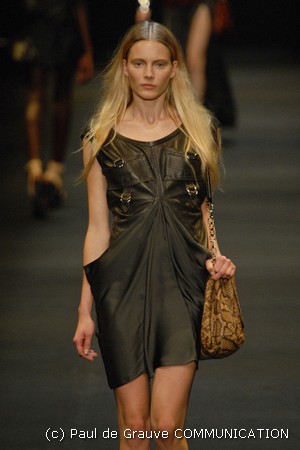 Sembra che l’intera collezione sia percorsa da intenti molto decisi e di rottura, che però non si concretizzano in creazioni eleganti e portabili. Gli inserti in pitone o in paillettes per le giacche in pelle o in suede sono eccessivi, sfiorano la mancanza di buon gusto e risultano poco coerenti con lo stile dei modelli precedenti. Troppi i particolari in camoscio sulle giacche oversize e decisamente poco eleganti i top in pelle nera. In compenso gli accessori sono molto interessanti, le strutture pensate per i sandali molto particolari e le borse in cocco martellato decisamente chic.