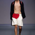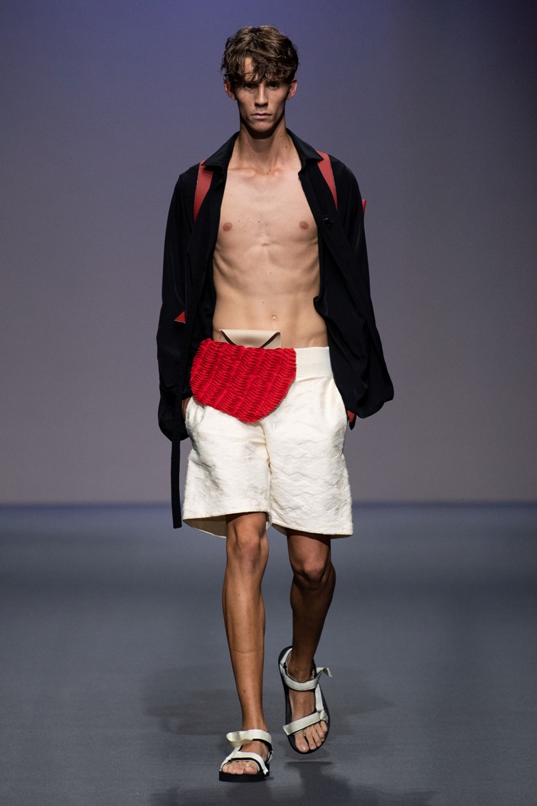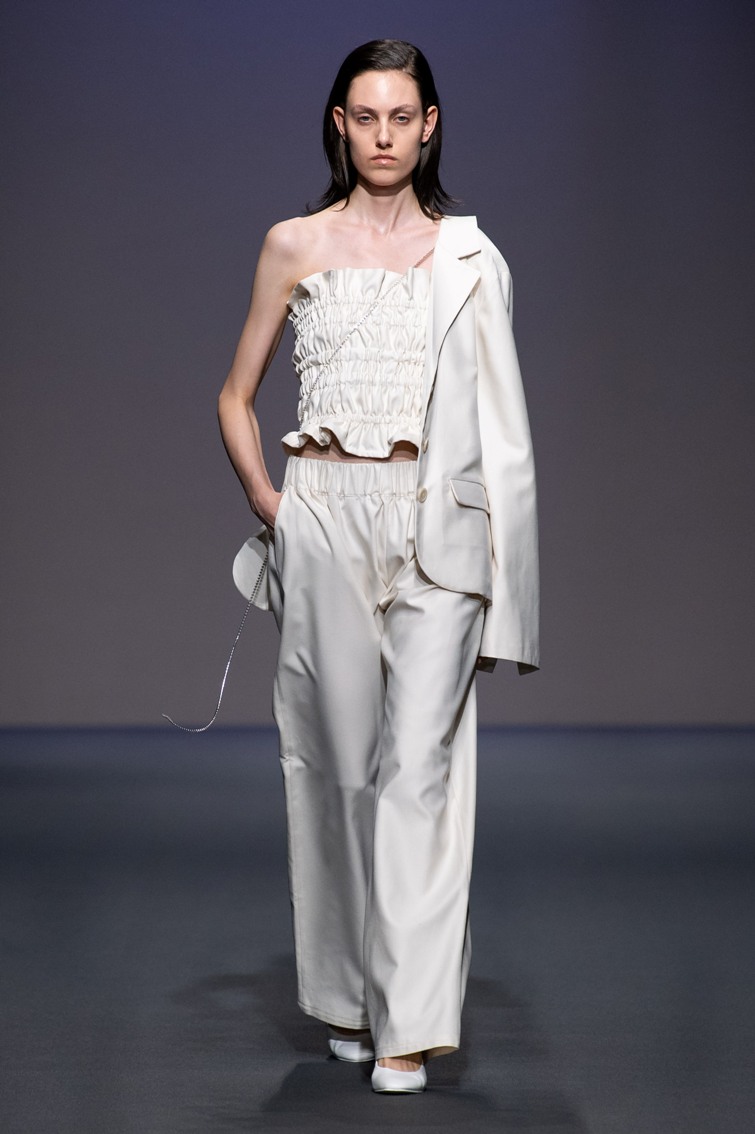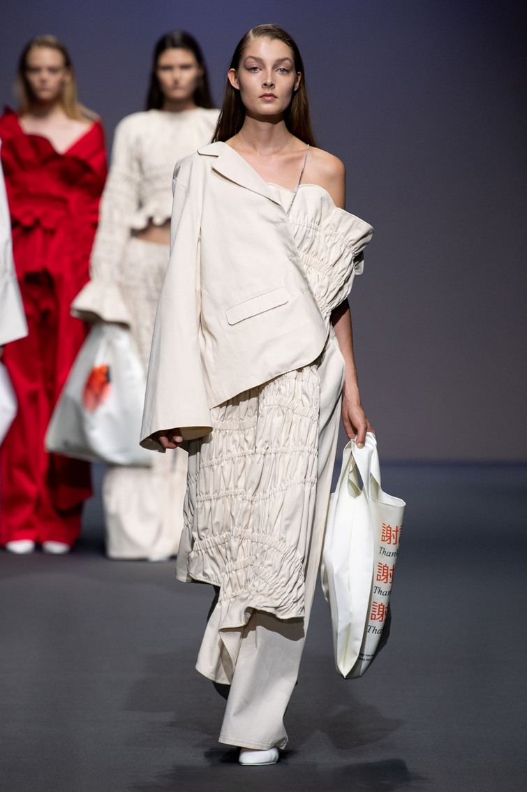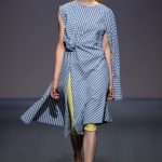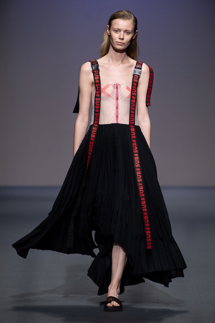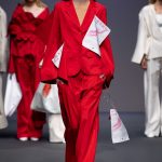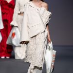 La stilista prende ispirazione dalla vita reale e dalla cultura contemporanea mantenendo al contempo un atteggiamento, nei confronti della moda, sperimentale, sostenibile, e talvolta sovversivo. Interessante l’obiettivo che si propone cioè è creare nuove narrazioni attraverso collezioni che combinino avanguardia, workwear e streetwear ci sembra però che nella collezione che ha presentato alcuni capi siano troppo appesantiti da sovrastrutture e da una ricercata densità del tessuto per rispondere all’obiettivo stesso. Si nota comunque una buona capacità di costruzione dell’abito derivata dalla sua preparazione professionale come architetto.