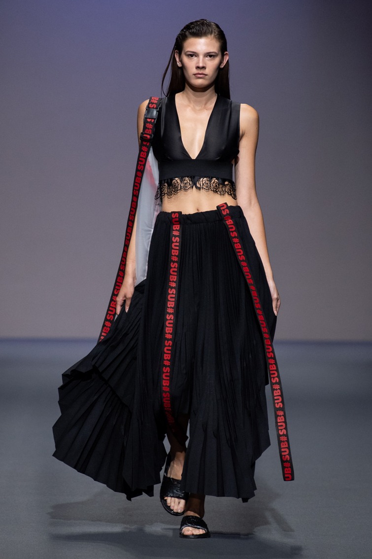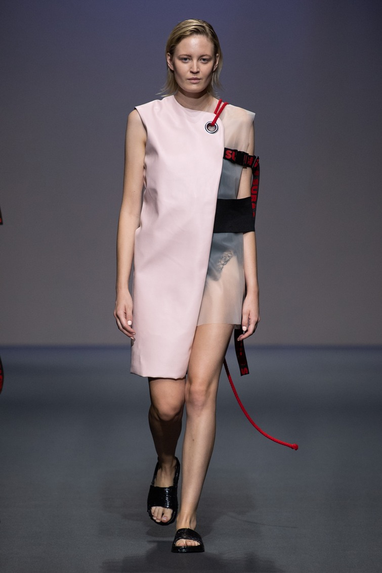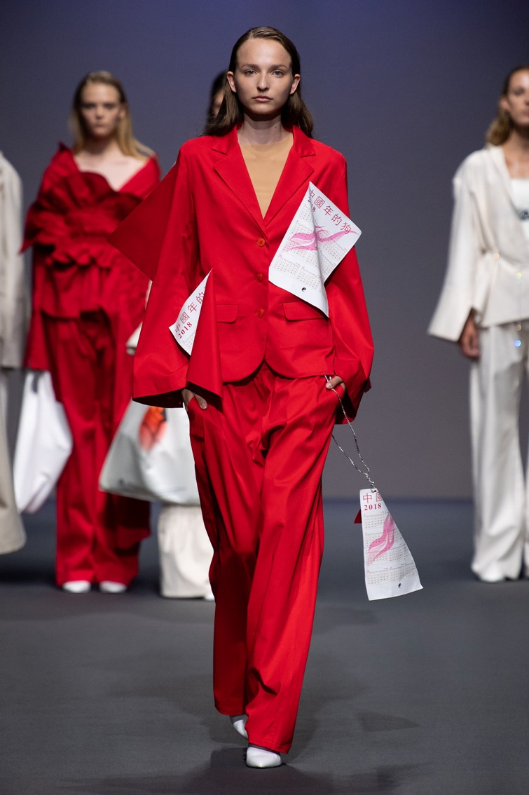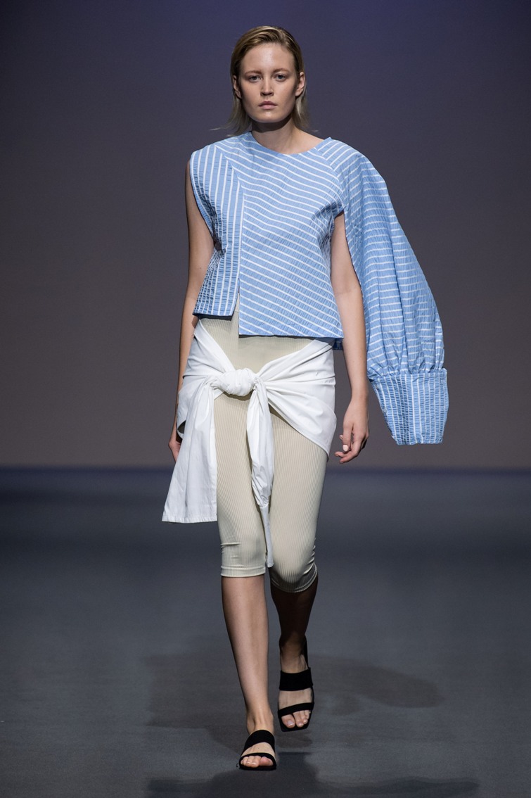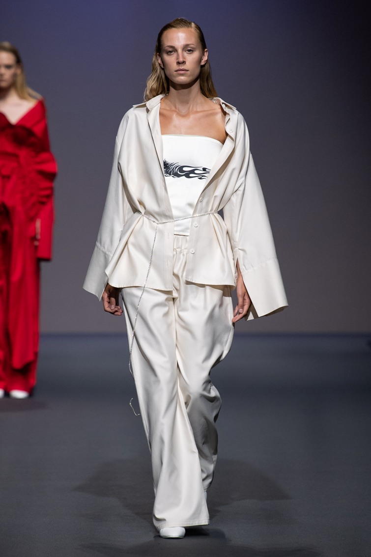 La stilista prende ispirazione dalla vita reale e dalla cultura contemporanea mantenendo al contempo un atteggiamento, nei confronti della moda, sperimentale, sostenibile, e talvolta sovversivo. Interessante l’obiettivo che si propone cioè è creare nuove narrazioni attraverso collezioni che combinino avanguardia, workwear e streetwear ci sembra però che nella collezione che ha presentato alcuni capi siano troppo appesantiti da sovrastrutture e da una ricercata densità del tessuto per rispondere all’obiettivo stesso. Si nota comunque una buona capacità di costruzione dell’abito derivata dalla sua preparazione professionale come architetto.