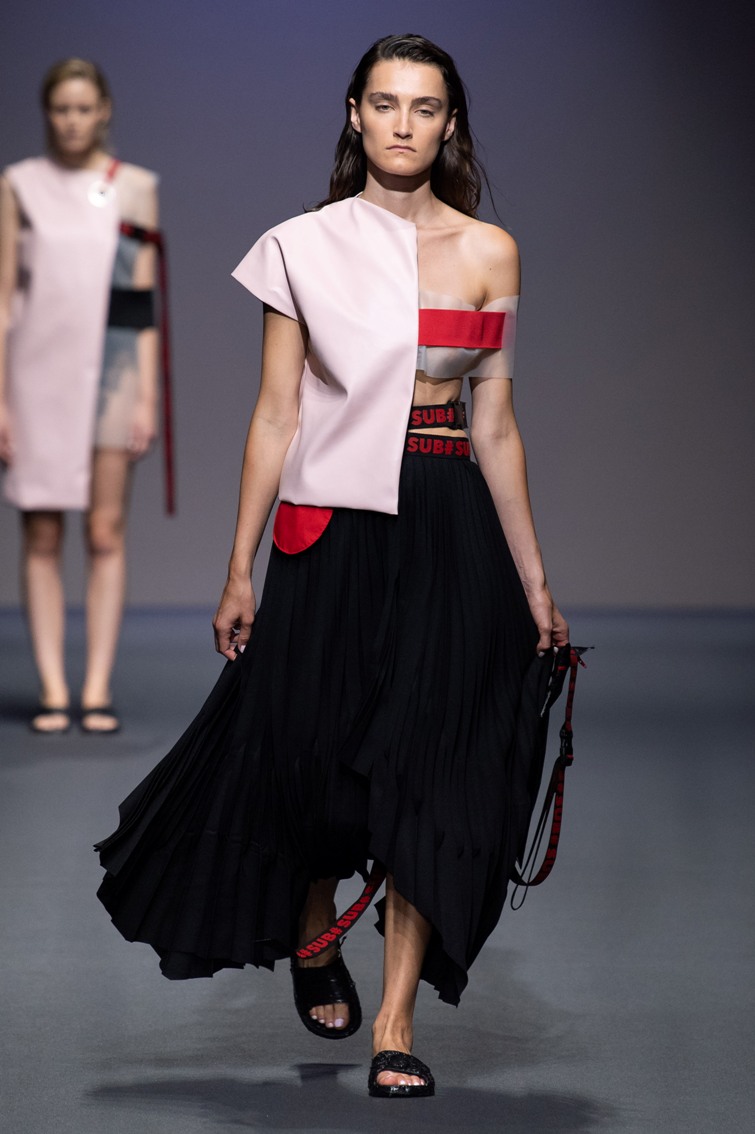 PINA è la collezione P/E 2019 che rappresenta la danza/il teatro della ballerina e coreografa Pina Bausch. Costei fu una delle maggiori esponenti della danza contemporanea, in grado di cambiare completamente il modo in cui veniva vista la danza ai suoi tempi. Il focus principale della designer risiede nei volumi e nei colori della danza/teatro che l’hanno colpita maggiormente nell’arco della carriera di Pina Bausch. Orpheus ed Eurydice, Muller Coffee, Carnations e The Spring Prize sono i pezzi che hanno influenzato di più la collezione. Essi sono rappresentati tramite i volumi, i colori e le stoffe. Rimane di fatto un collezione troppo influenzata dalla fonte di ispirazione, la danza.