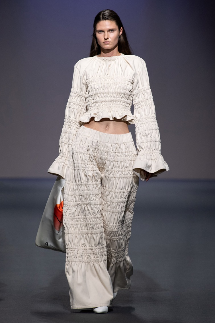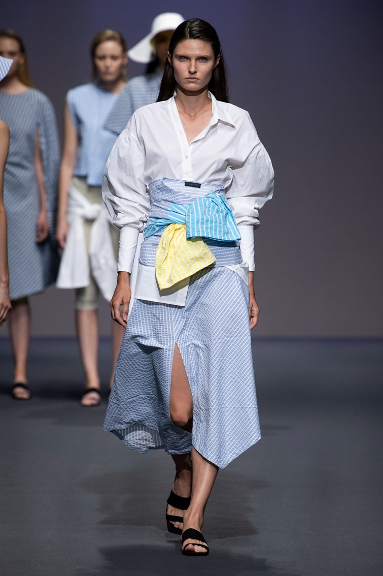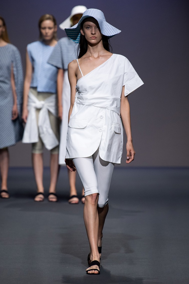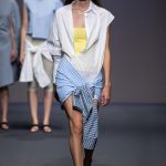 La decostruzione dei pezzi è il risultato della distrazione e del rinvio di compiti e fasi, in cui i dettagli dei classici vengono decontestualizzati o divisi. Una collezione dai toni rilassati come si conviene in estate, ma non trasandati: la stilista cura molto l’aspetto pulito e formale del capo.