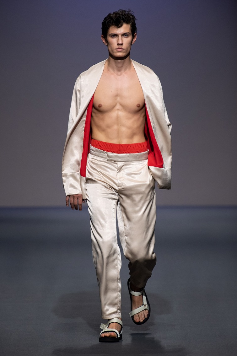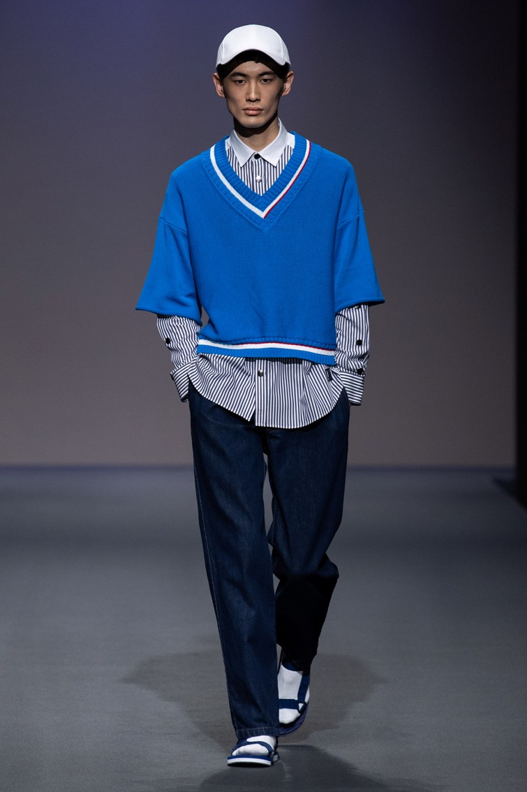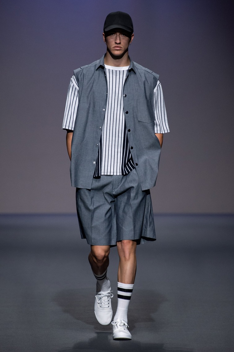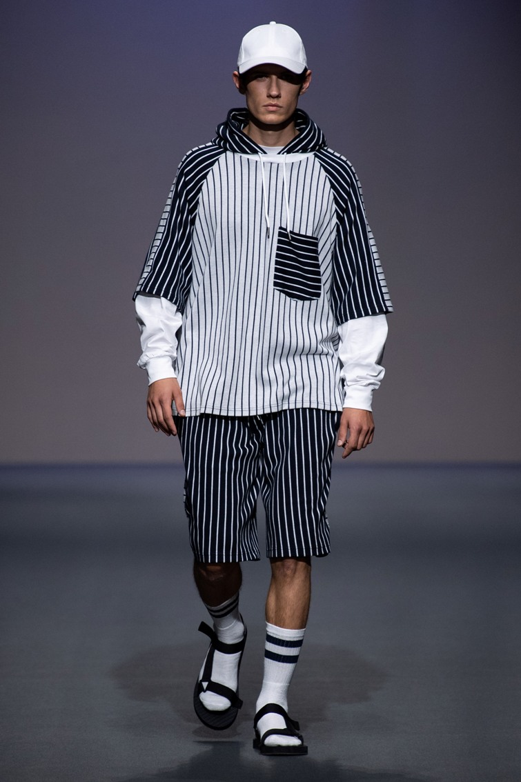 Il punto di partenza per lo sviluppo di questa collezione P/E 2019, sono gli anni ’70. La collezione è ispirata a due universi diversi, le divise della squadra di baseball e la rock band psichedelica dei Led Zeppelin, il gruppo musicale costituitosi nel 1968 e considerato tra i grandi innovatori del rock e tra i principali pionieri dell’hard rock – La silhouette oversize è ispirata all’universo del baseball. Sovrapposizioni, righe e camicie sono alcuni dei capi chiave della collezione. L’estetica dei Led Zeppelin ha influenzato invece la palette dei colori e i materiali della collezione. Una collezione interessante che coniuga l’abbigliamento sport ad un misurato formalismo.