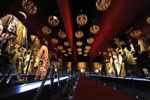 La mostra d’Oltralpe spazia in epoche diverse, offrendo allo sguardo del visitatore costumi non solo realistici, ma anche fantasmagorici. Così, trasportati dall’antichità barbarica all’oggi, si viaggia attraverso stili diversi seguendo il filo che da Luigi XIV conduce a Vladimir Putin.