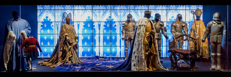 All’eccezionale mostra di Moulins, curata da Noëlle Giret et Martine Kahane e con le scenografie di Alain Batifoulier e Simon de Tovar, i protagonisti che ci hanno impressionato di più per la loro forza icastica (una bellezza mozzafiato che incute soggezione e timor sacro in virtù di forza espressiva e, spesso, preziosità) sono: Ricarda Merbeth e Robert Dean Smith nei costumi dell’Imperatrice e dell’Imperatore di Franca Squarciapino per La Femme sans ombre (Théâtre du Capitole, Tolosa, 2006); Milla Jovovich nell’armatura disegnata da Catherine Leterrier per il film Giovanna d’Arco di Luc Besson (Collezione Museo Gaumont); da Rigoletto, i costumi dei cortigiani di Carlo Tommasi (Théâtre du Capitole, Tolosa, 2006); Stéphanie d’Oustrac nel costume di Cibele di Jean-Marie Villégier, per Atys (Les Arts florissants, 2011); il costume di Anna Maria Heinreich per la contessa ne La Dame de Pique (Opéra de Lyon, stagione 2007-2008); la corona ricoperta di strass Swarovski, realizzata da Anna Maria Heinreich sul modello della corona di Caterina di Russia per la succitata Dame de Pique; il costume di Daniel Ogier per Boris, in Boris Godounov (Théâtre du Capitole, Tolose, 1993); il costume di Tomio Mohri per la regina ne Il lago dei cigni (Palais Garnier, 1992, Coll. CNCS/ONP); il costume di Daniel Ogier per la principessa di Eboli in Don Carlos, Opéra National de Bordeaux, 1991, CNCS); il costume di Filippo II di Daniel Ogier, per il medesimo Don Carlos; il costume di Daniel Ogier per Giuditta ne Il Castello di Barba Blu, Opéra National de Bordeaux, 1993, CNCS).