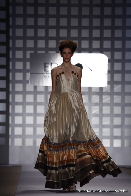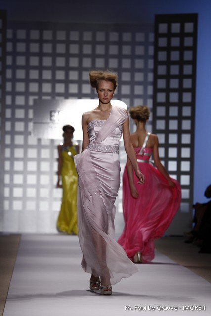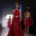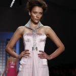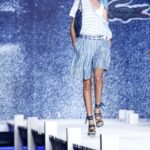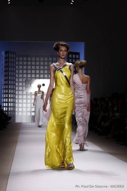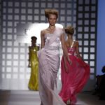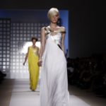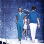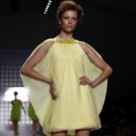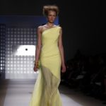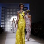 La prima impressione è che lo stilista americano abbia disegnato la sua collezione mentre gustava dei cioccolatini e delle caramelle. Le modelle sfilano e sembrano essere “incartate” con abiti che ricordano i “bons bons” . Colori pastello allegri, con una palette che spazia dal giallo all’ocra tramonto, dal verde al blu, dal rosa al celeste , con incursioni di bianco e argento.