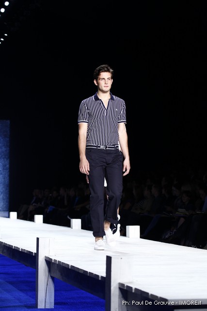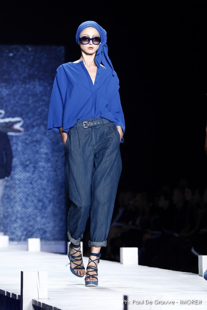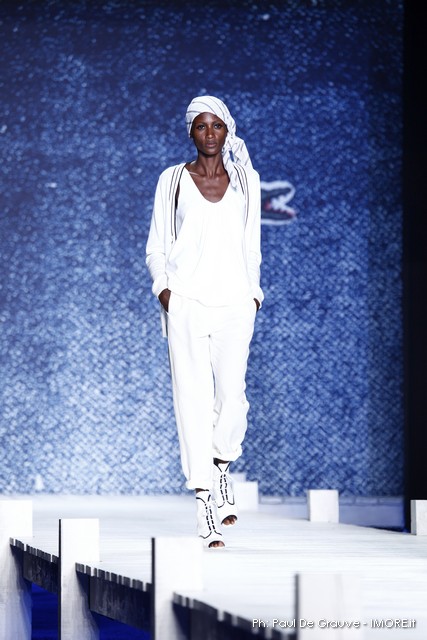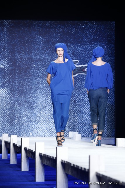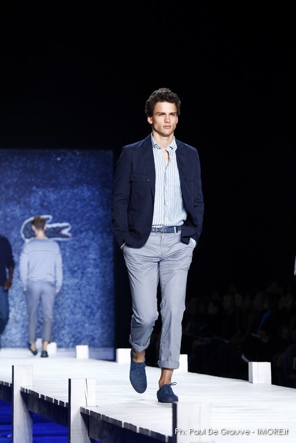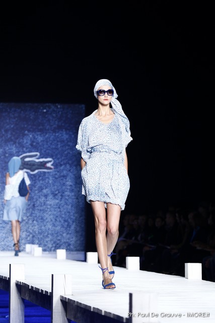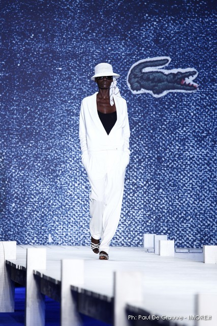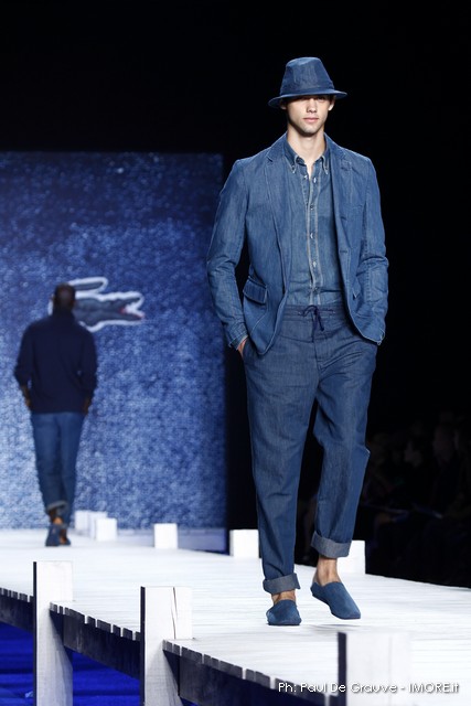 La giornata propone subito il vero Big Player in programma oggi. Il marchio del coccodrillo presenta una collezione originale, che ci piace e un po’ ci sorprende. Ci aspettavamo il solito dejà vue della polo sotto varie forme, invece troviamo per quanto possibile una collezione con spunti e stimoli interessanti.