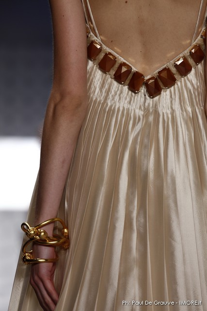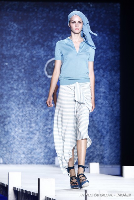 Le maniche ampie e gli scolli abbondanti ci parlano di estate e di caldo, i colori sono quelli del bianco e del blu profondo. Infine il copricapo è protagonista, che sia un cappuccio, un foulard di cotone arrotolato attorno ai capelli, un nastro da annodare con un fiocco sulla testa o un cappello a falde larghe.