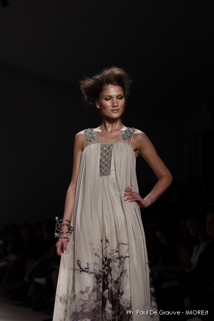 ( da New York ) Terzo giorno della Mercedes Benz Fashion Week ancora sotto la pioggia. Trovare un taxi quando piove e muoversi veloci da tra un lato e l’altro della città è un’impresa anche qui a New York come in qualsiasi altra parte del mondo. Prima sfilata programmata per le dieci e alle 9 e 30 sono ancora sul taxi che fortunosamente sono riuscito a trovare e il mio driver è davvero, diciamo, espansivo (in realta sto pensando logorroico). Ci si potrebbe scrivere un libro sui taxisti newyorkesi. Per fortuna arrivo all’ingresso e , non si sa per quale strano motivo, sono tutti li, fuori, per strada, come quando a scuola si aspettava il suono della campanella per entrare. La ragione è rimasta a tutti sconosciuta ma “bene” penso, “non tutti i mali vengono per nuocere” e il mio ritardo è annullato.