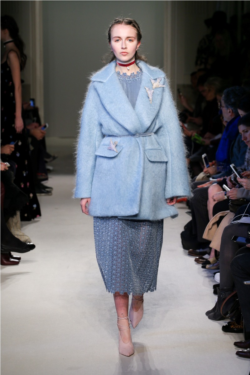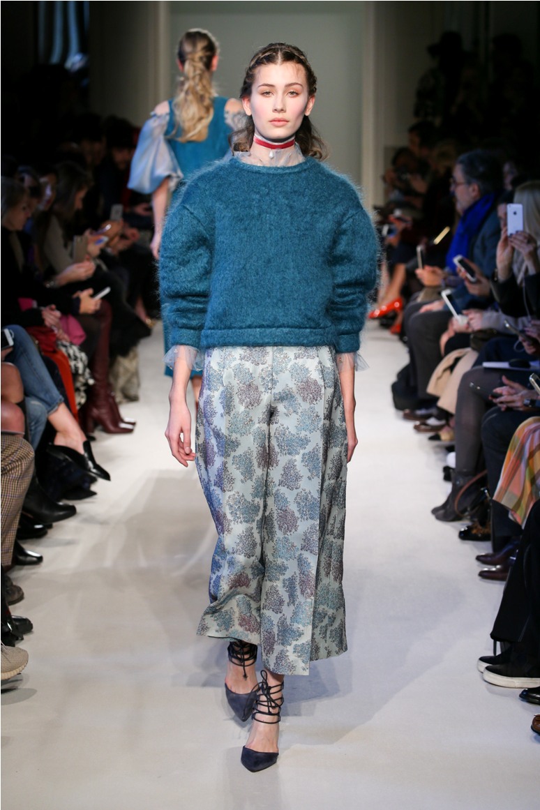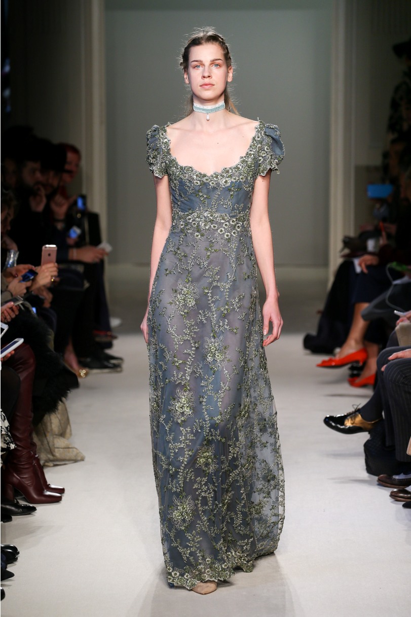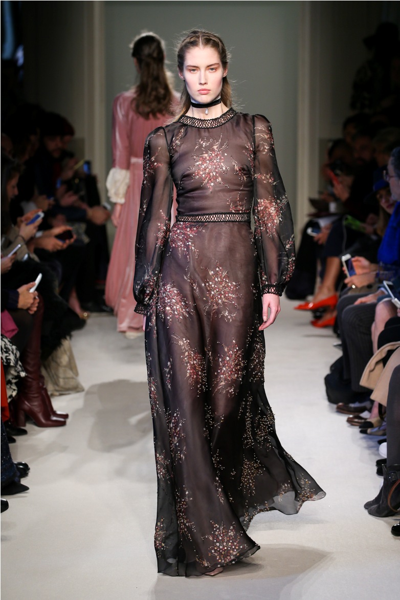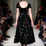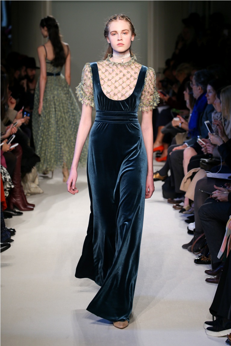 Difficile restare indifferenti di fronte a quei velluti -offerti a profusione trasversalmente a tutto-, a quei ricami -ricorrenti su abiti, maglie, corpetti, gonne-, a quei volumi -leggeri come piume e soffici come nuvole-.