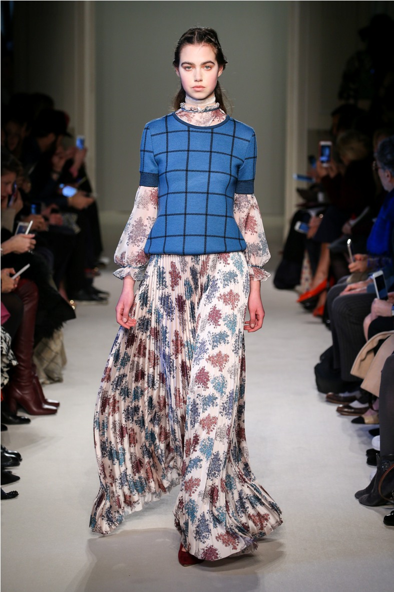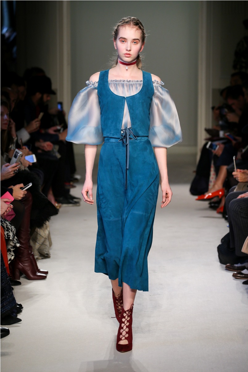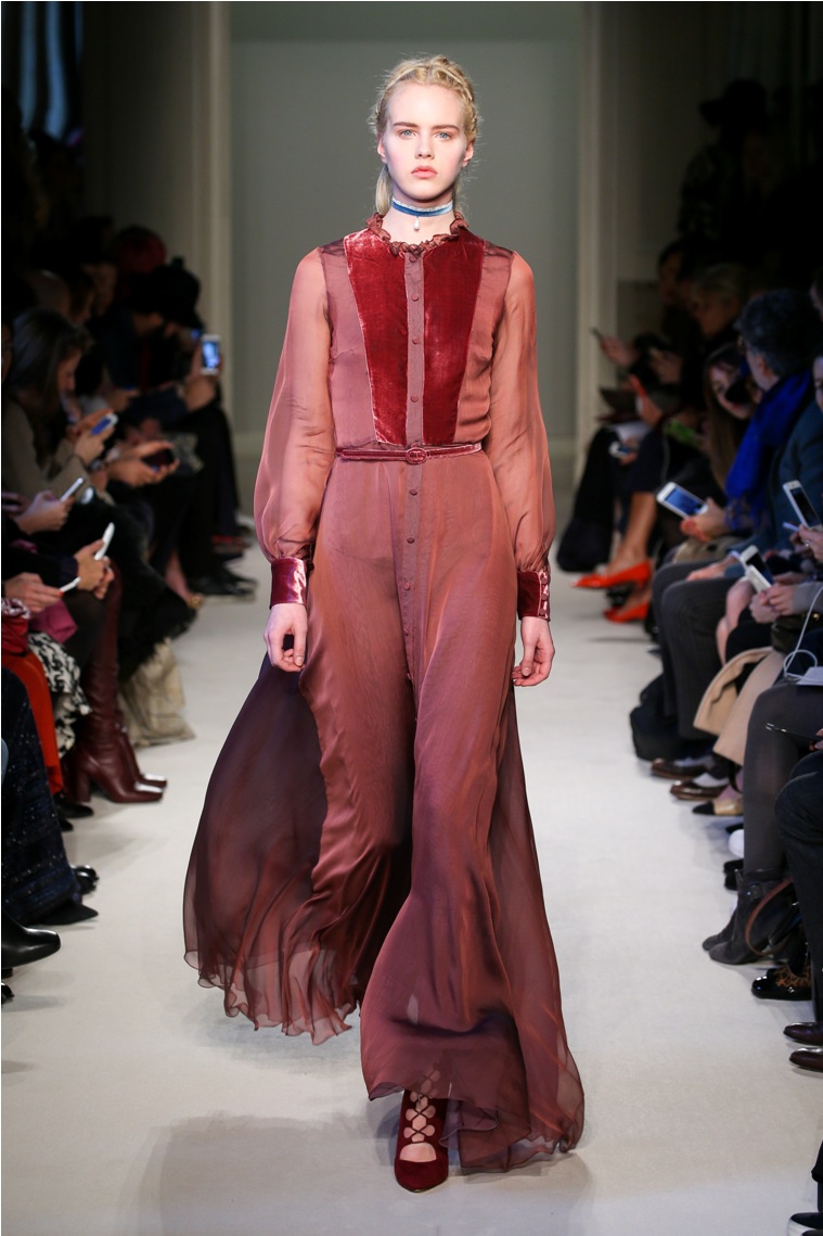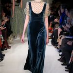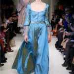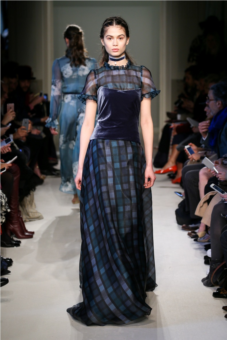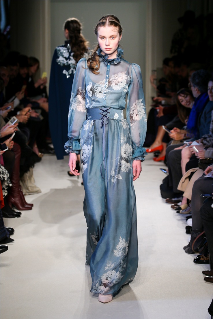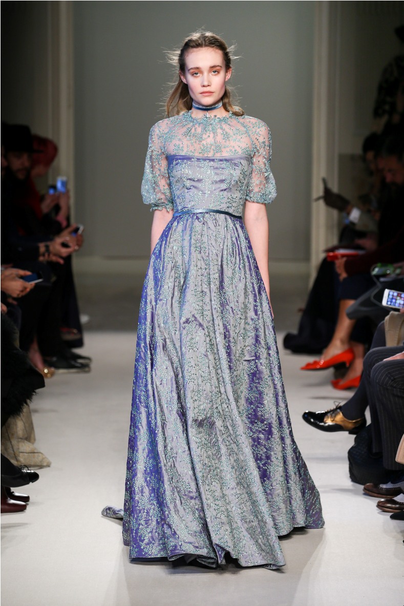 Difficile restare indifferenti di fronte a quei velluti -offerti a profusione trasversalmente a tutto-, a quei ricami -ricorrenti su abiti, maglie, corpetti, gonne-, a quei volumi -leggeri come piume e soffici come nuvole-.