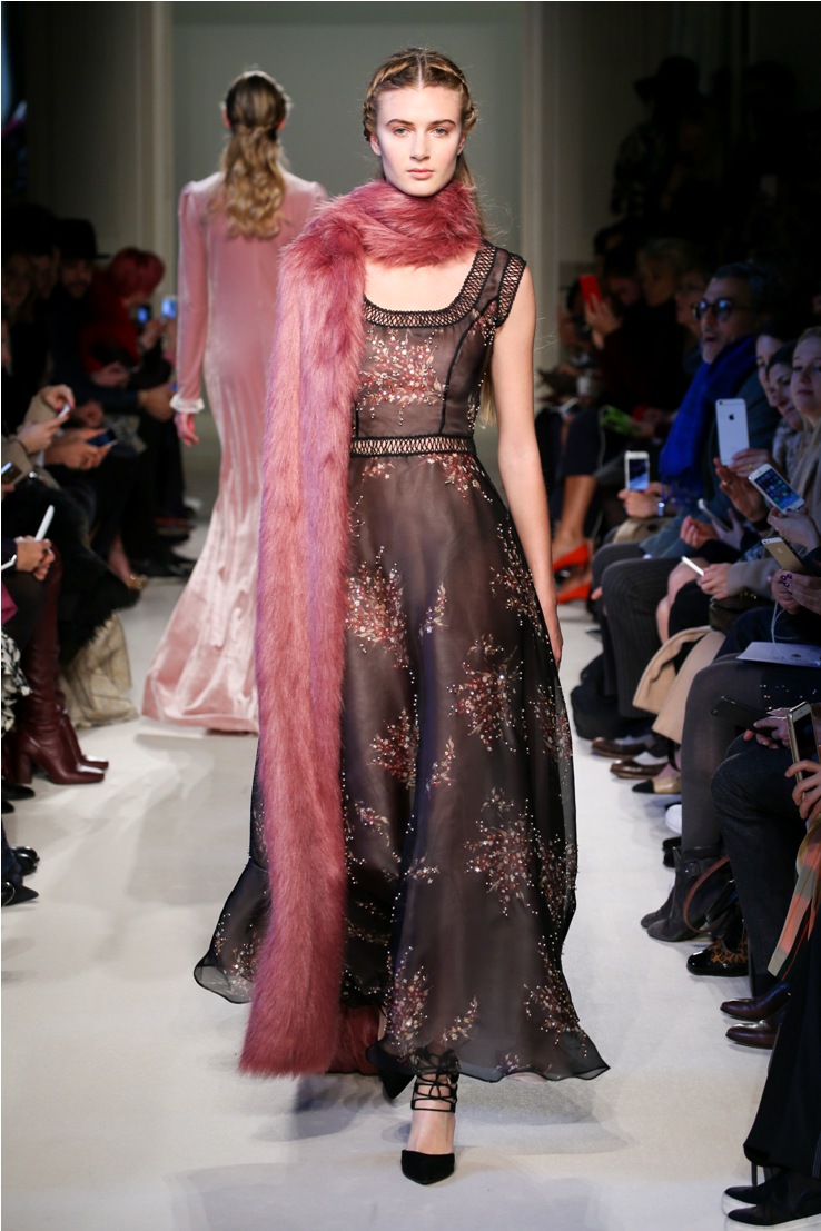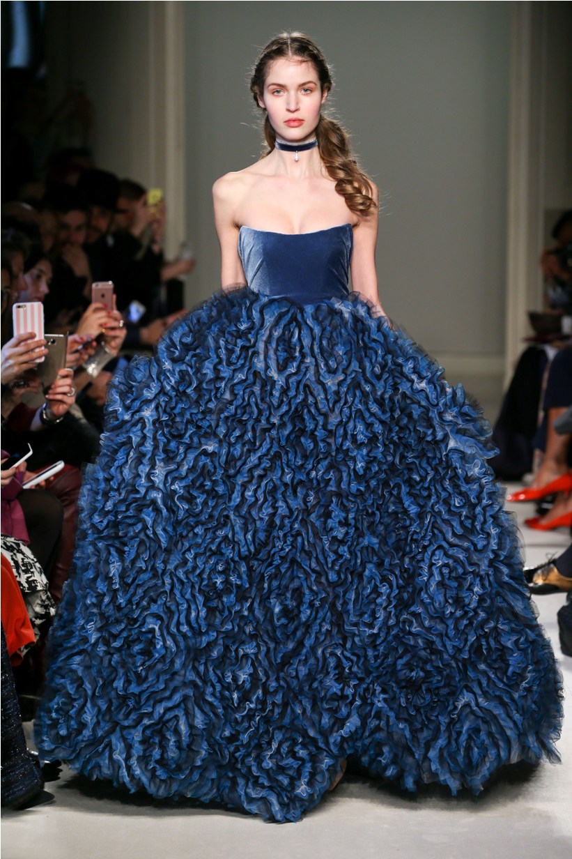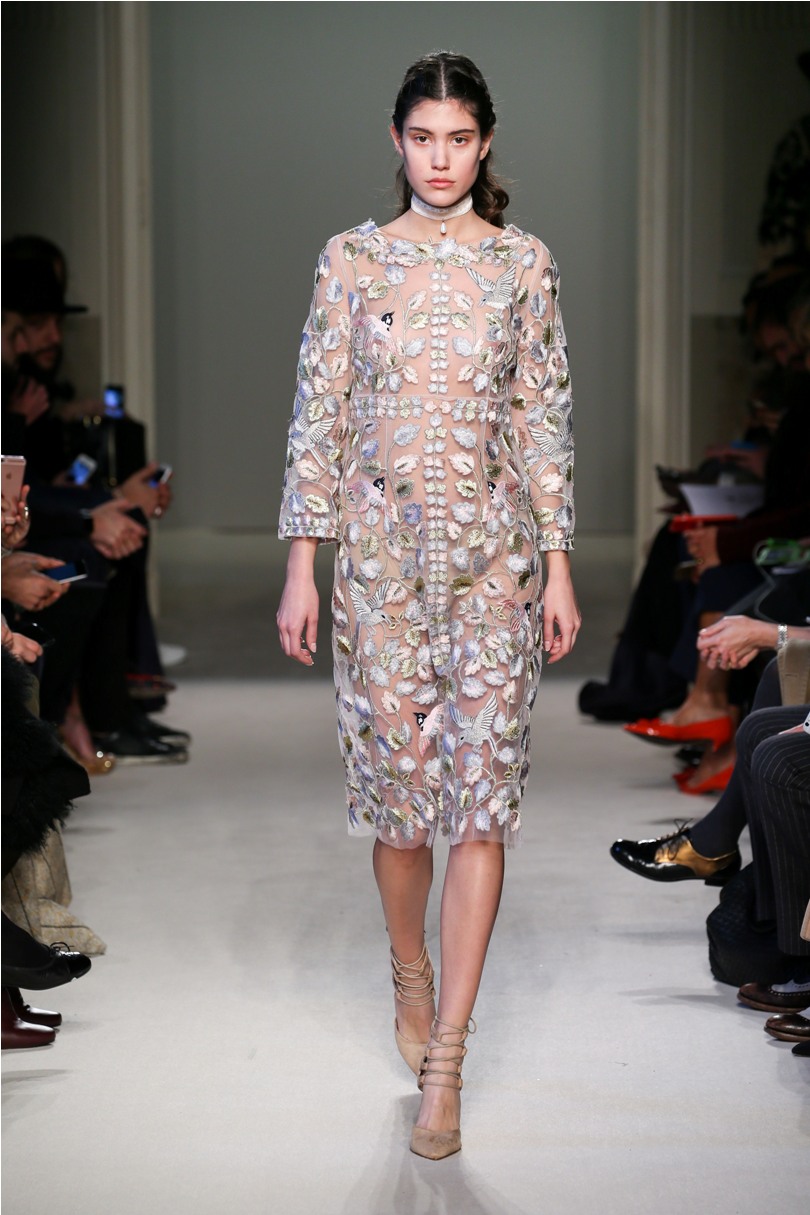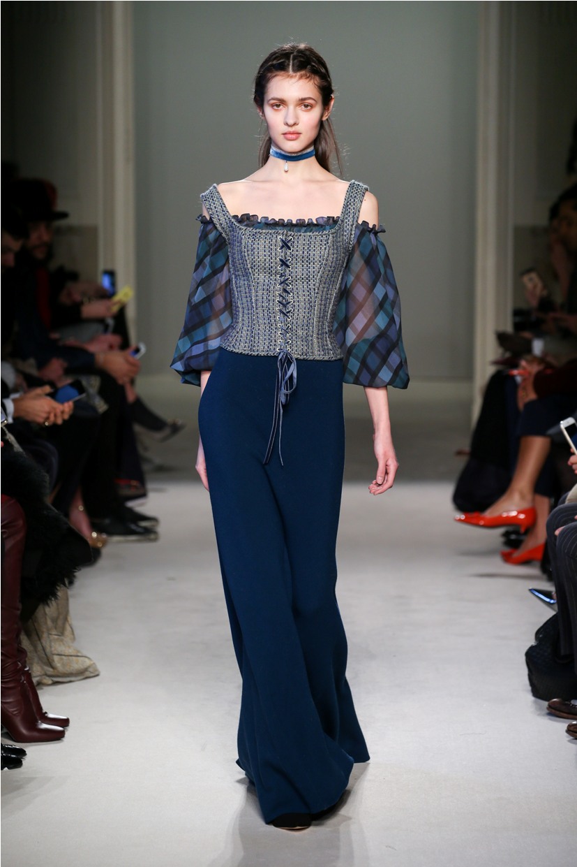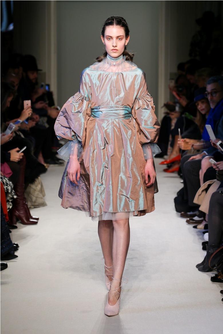 Difficile restare indifferenti di fronte a quei velluti -offerti a profusione trasversalmente a tutto-, a quei ricami -ricorrenti su abiti, maglie, corpetti, gonne-, a quei volumi -leggeri come piume e soffici come nuvole-.